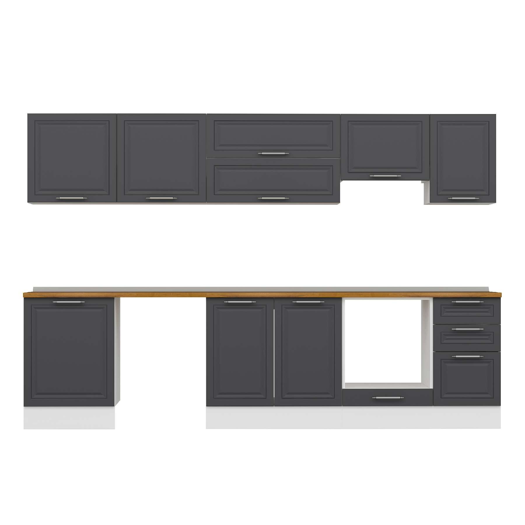 Alvinka 305X210 Cm Klasik Mebran Mutfak Dolabı M-E80S60S45-1 Mebran | Antrasit - Mdf