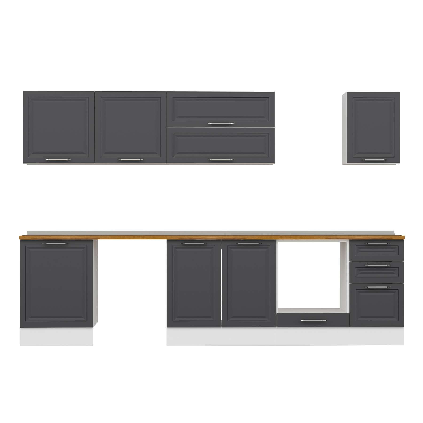 Alvinka 305X210 Cm Klasik Mebran Mutfak Dolabı M-E80S60S45-2 Mebran | Antrasit - Mdf