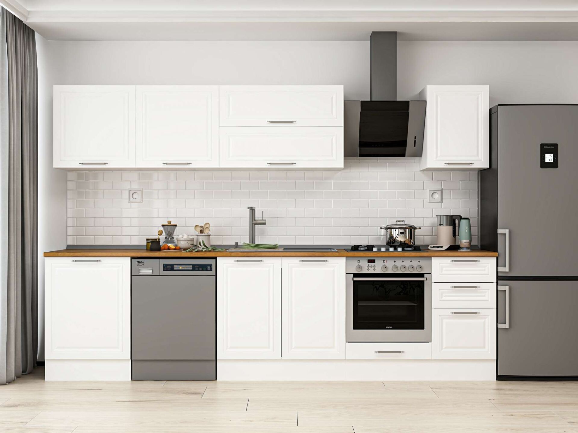 Alvinka 305X210 Cm Klasik Mebran Mutfak Dolabı M-E80S60S45-2 Mebran | Beyaz - Suntalam