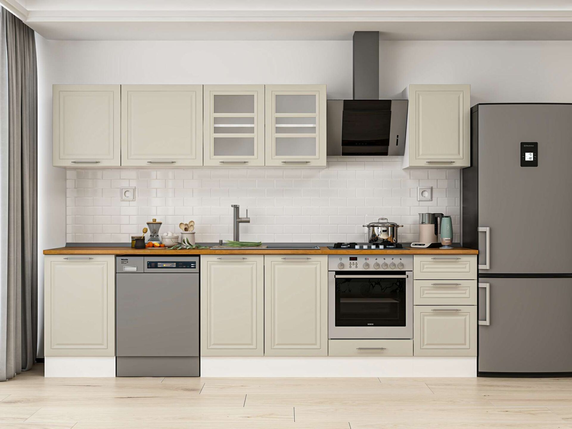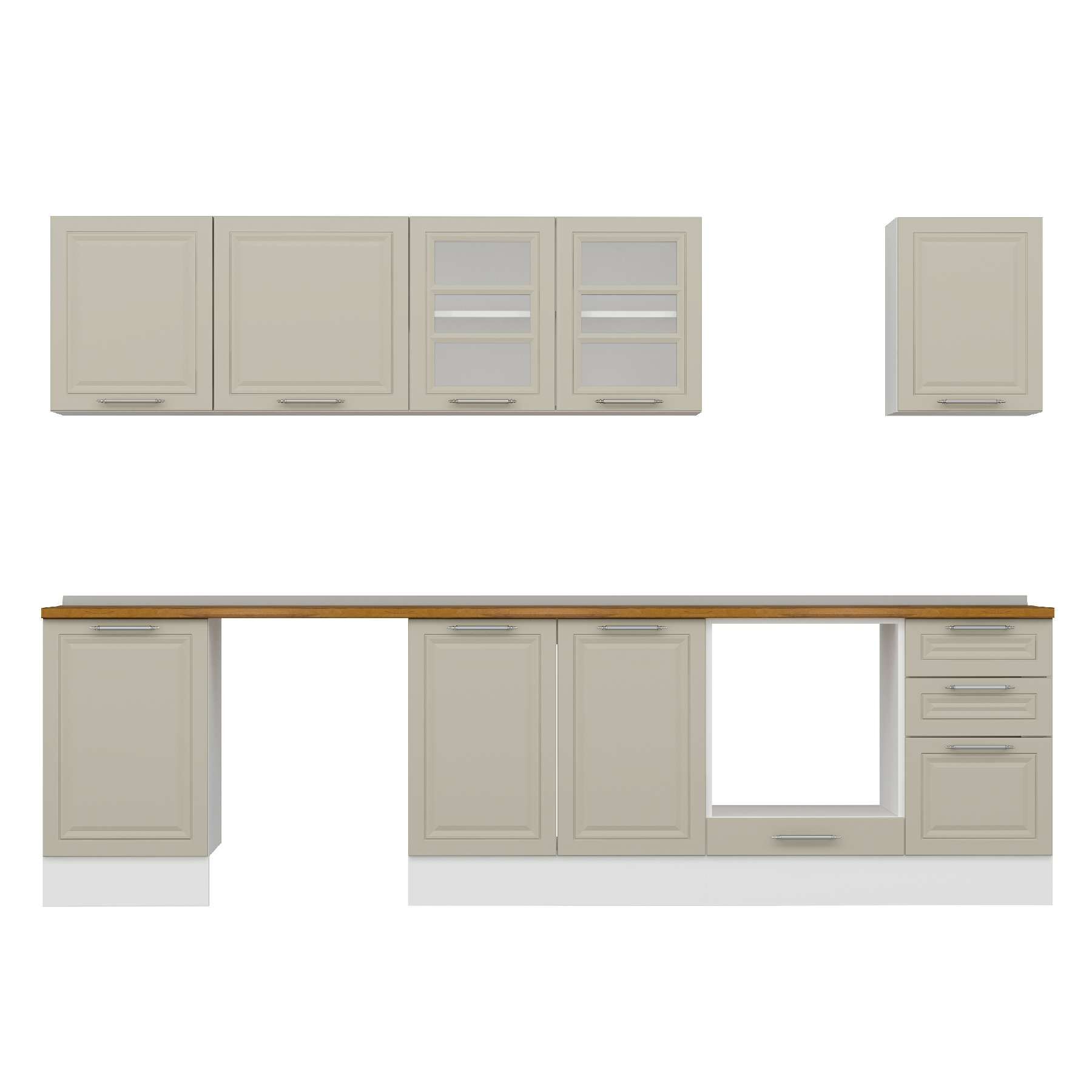 Alvinka 305X210 Cm Klasik Mebran Mutfak Dolabı M-E90S50S45-3 Mebran | Kumtaşı - Suntalam