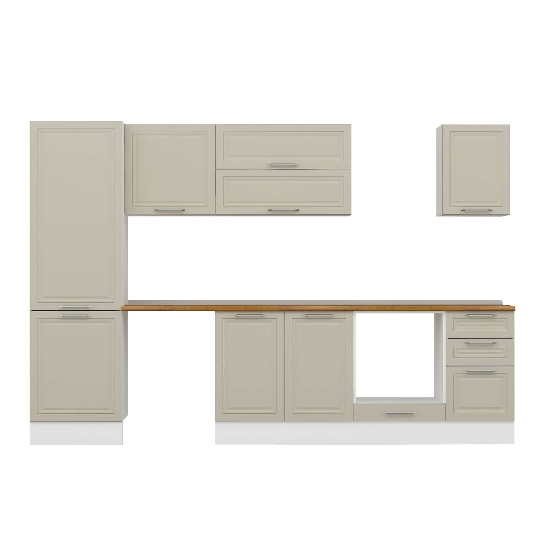 Alvinka 305X210 Cm Klasik Mebran Mutfak Dolabı Mb-E80B60S45-2 Mebran | Kumtaşı - Mdf