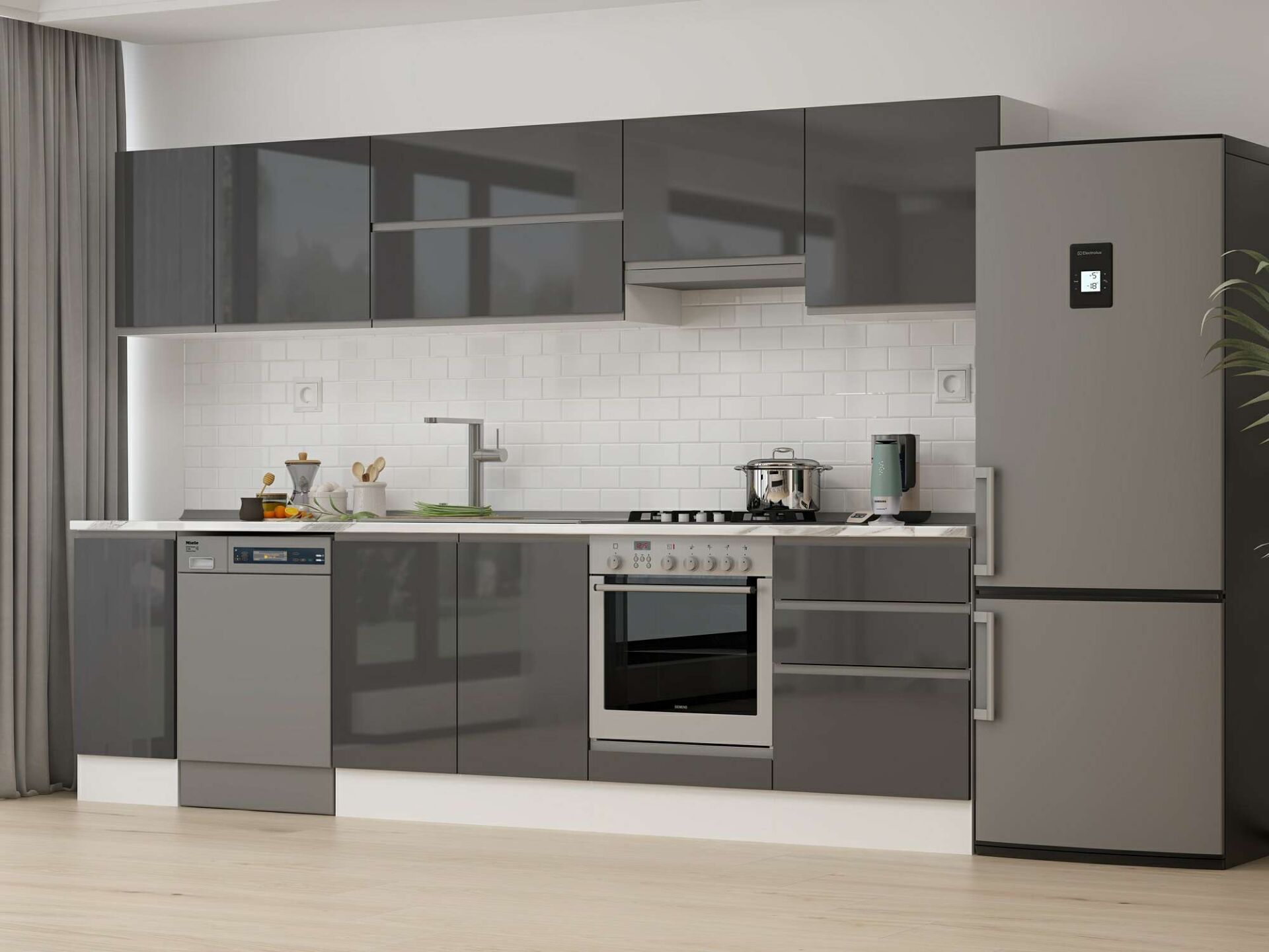 Alvinka 310X210 Cm High Gloss Mutfak Dolabı M-E90S40S60-1 High Gloss | Antrasit - Mdf
