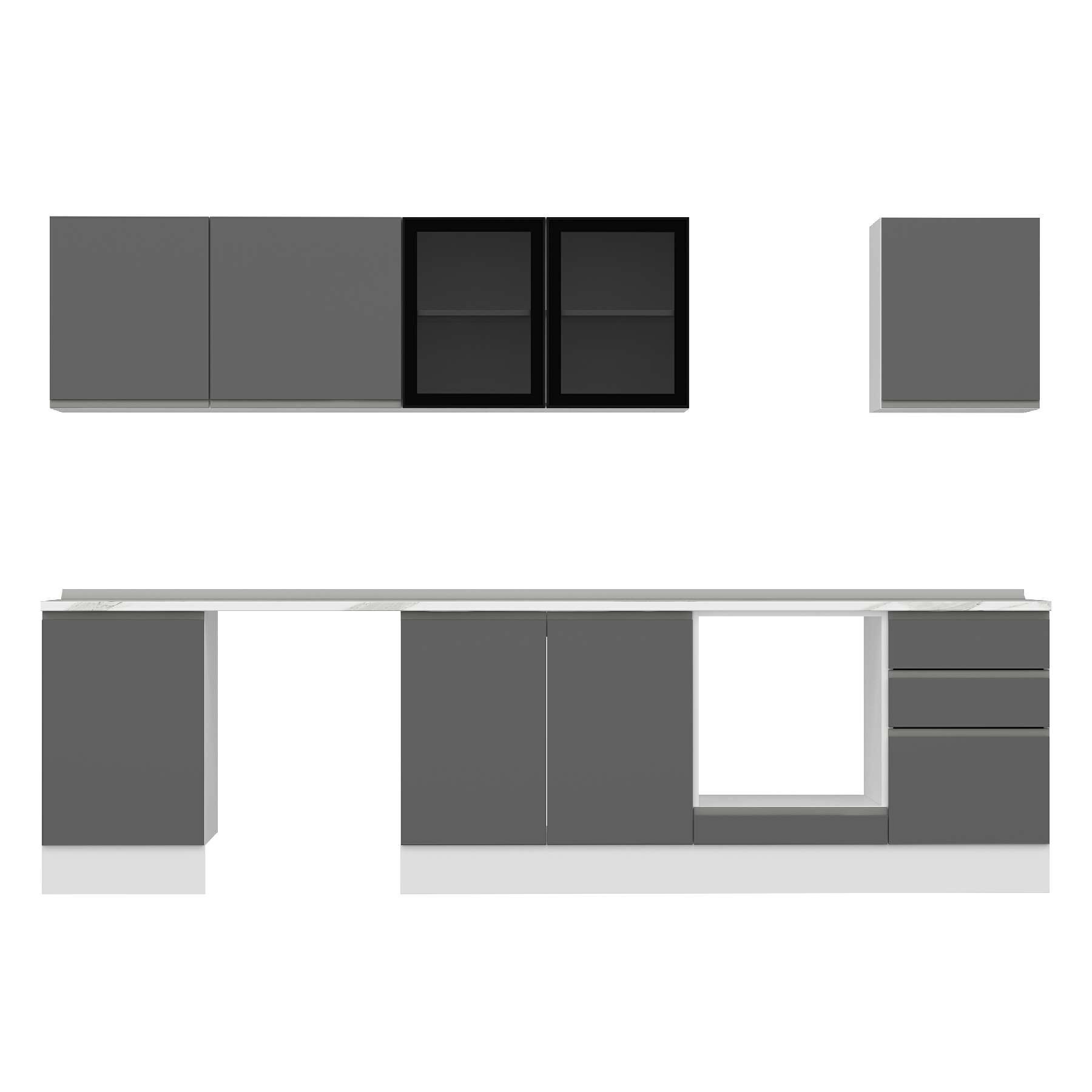 Alvinka 310X210 Cm High Gloss Mutfak Dolabı M-E90S50S50-3 High Gloss | Antrasit - Mdf