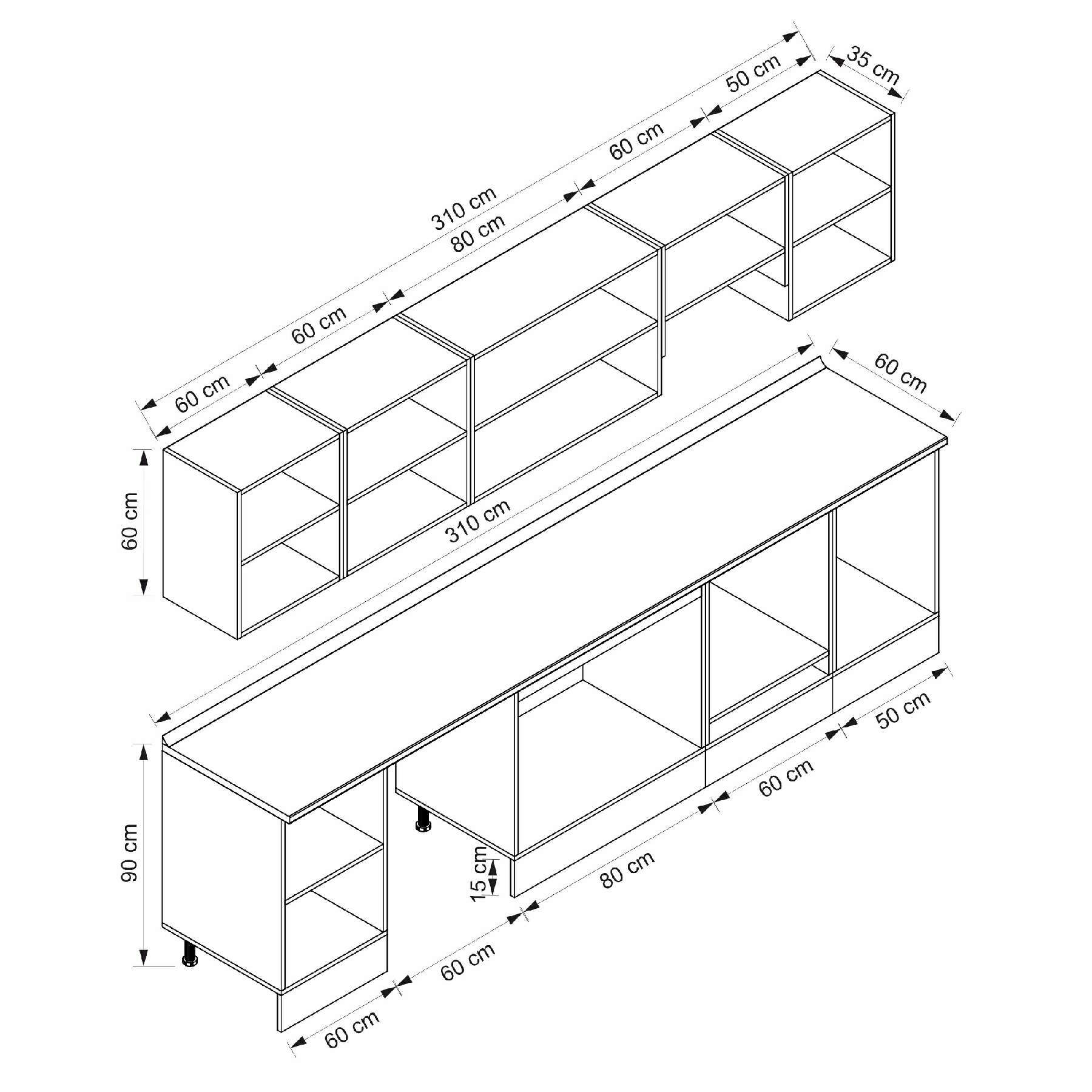 Alvinka 310X210 Cm Klasik Mebran Mutfak Dolabı M-E80S60S50-1