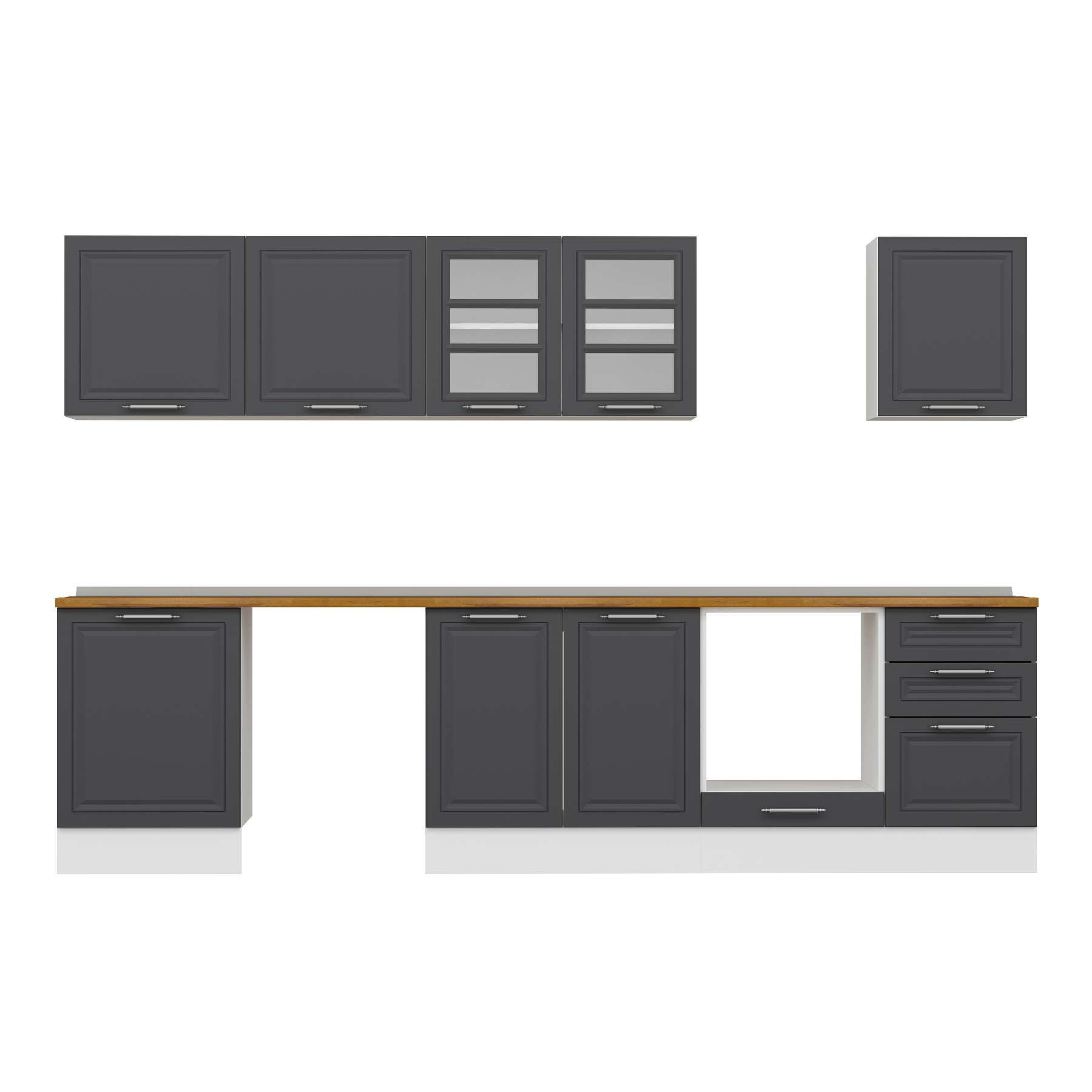 Alvinka 310X210 Cm Klasik Mebran Mutfak Dolabı M-E80S60S50-3 Mebran | Antrasit - Mdf