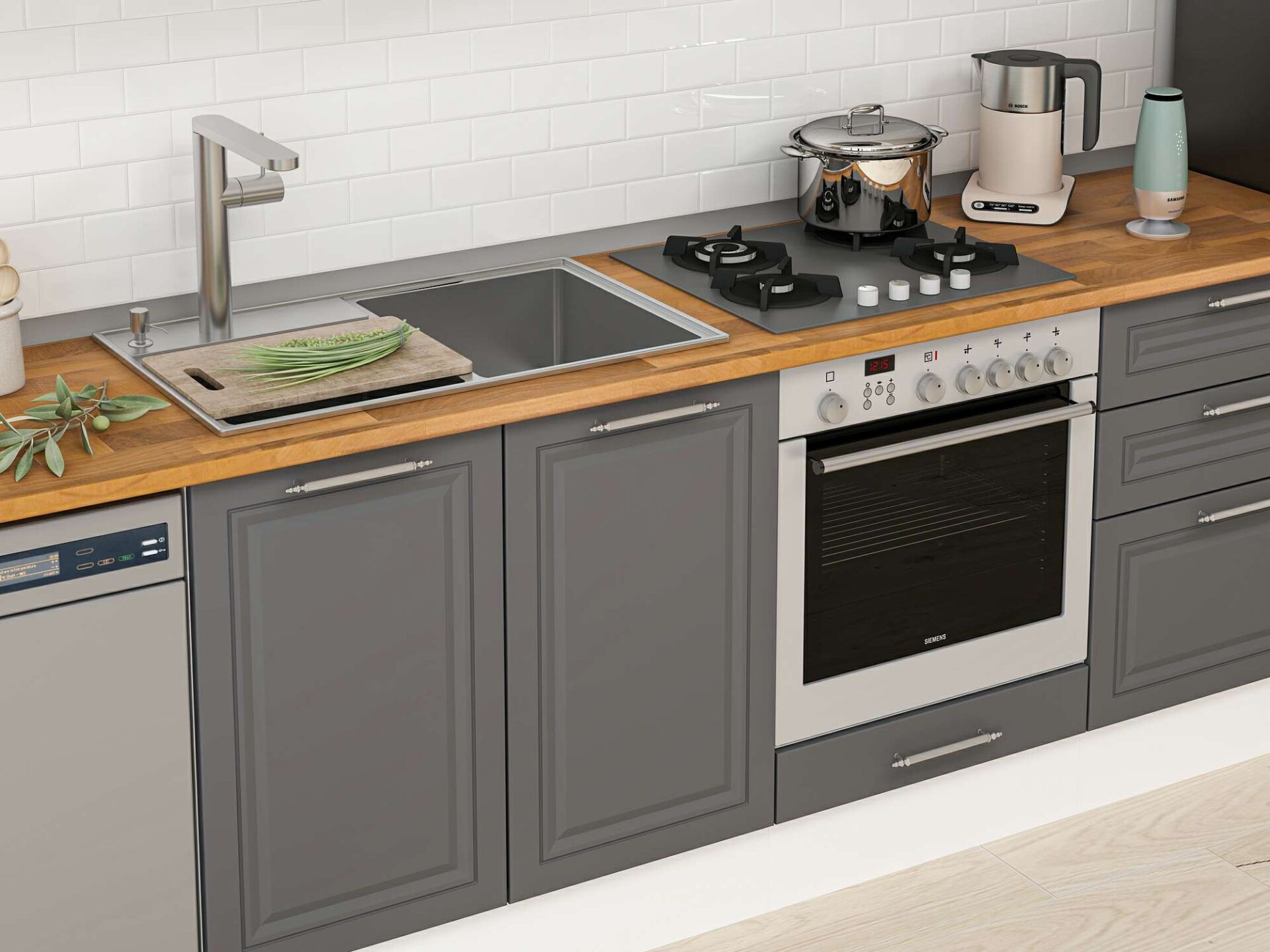 Alvinka 310X210 Cm Klasik Mebran Mutfak Dolabı M-E90S40S60-3 Mebran | Antrasit - Suntalam