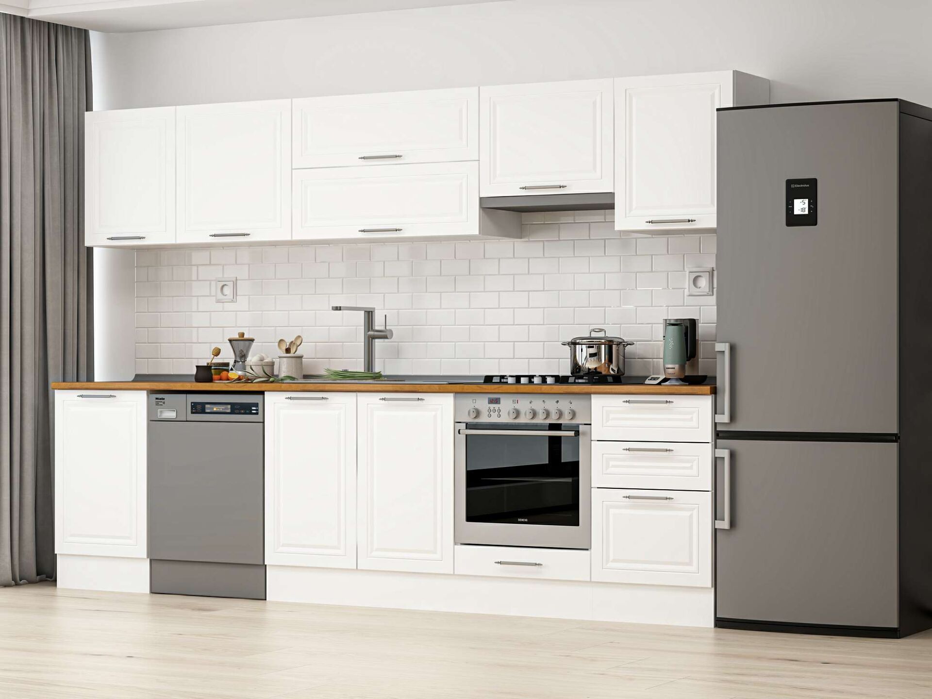 Alvinka 310X210 Cm Klasik Mebran Mutfak Dolabı M-E90S50S50-1 Mebran | Beyaz - Suntalam