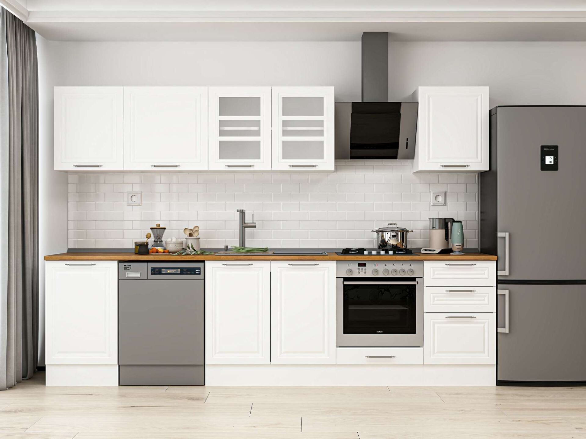 Alvinka 310X210 Cm Klasik Mebran Mutfak Dolabı M-E90S50S50-3 Mebran | Beyaz - Mdf