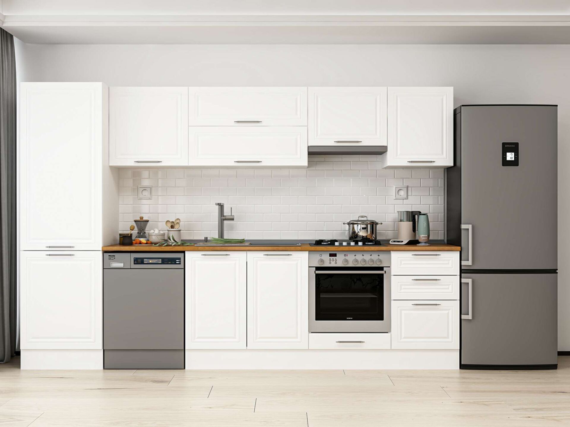 Alvinka 310X210 Cm Klasik Mebran Mutfak Dolabı Mb-E80B60S50-1 Mebran | Beyaz - Mdf