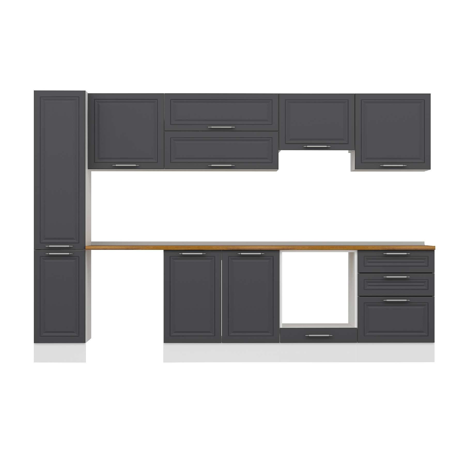Alvinka 310X210 Cm Klasik Mebran Mutfak Dolabı Mb-E90B40S60-1 Mebran | Antrasit - Mdf