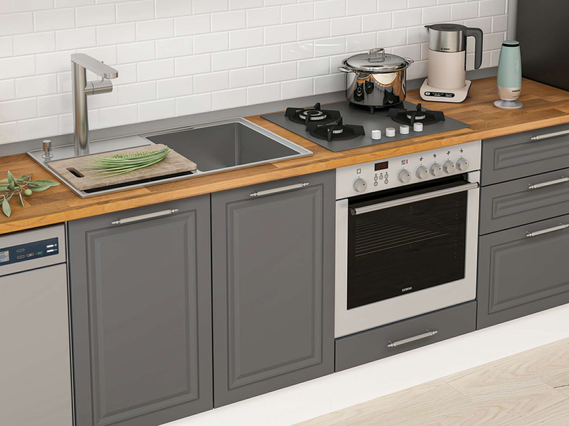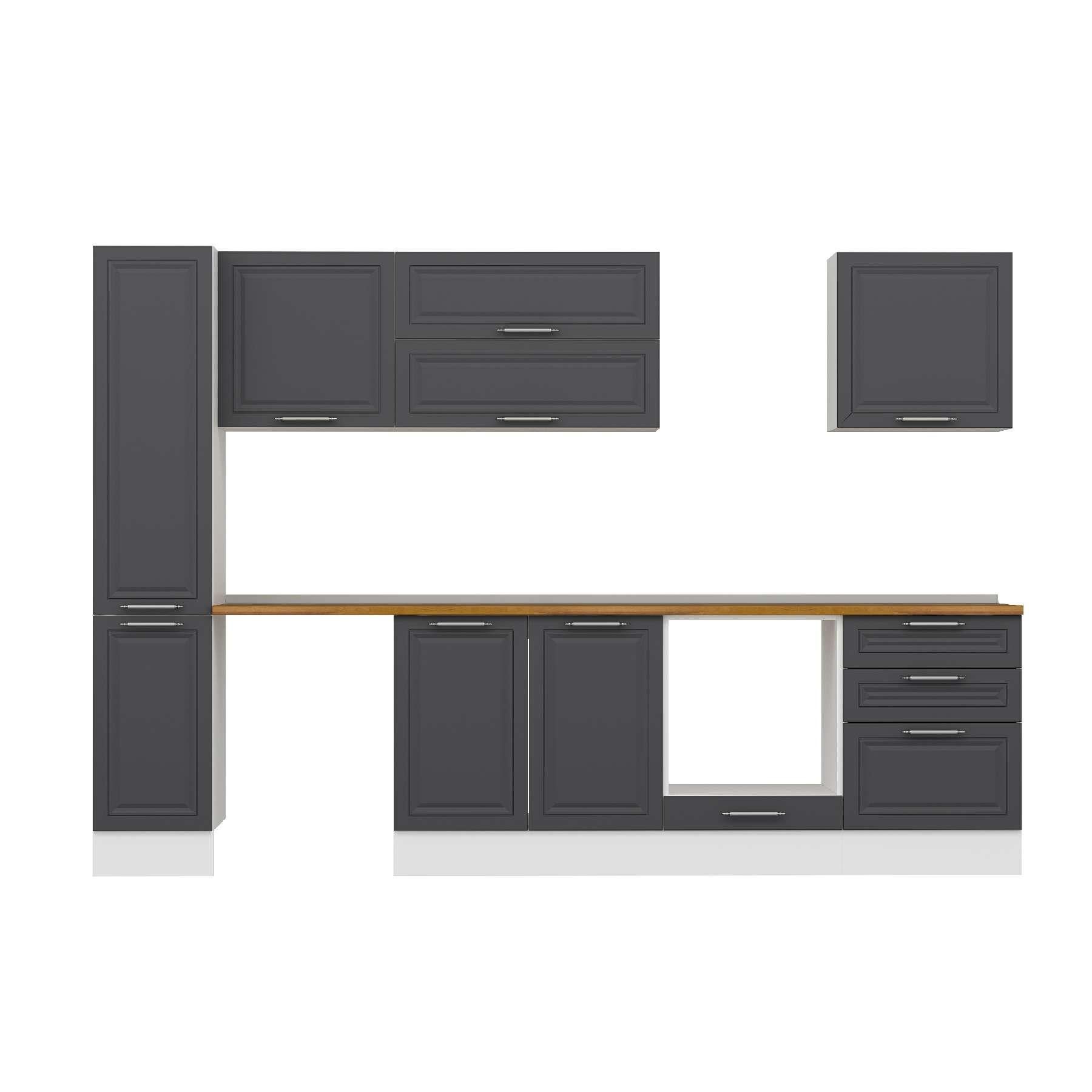 Alvinka 310X210 Cm Klasik Mebran Mutfak Dolabı Mb-E90B40S60-2 Mebran | Antrasit - Suntalam