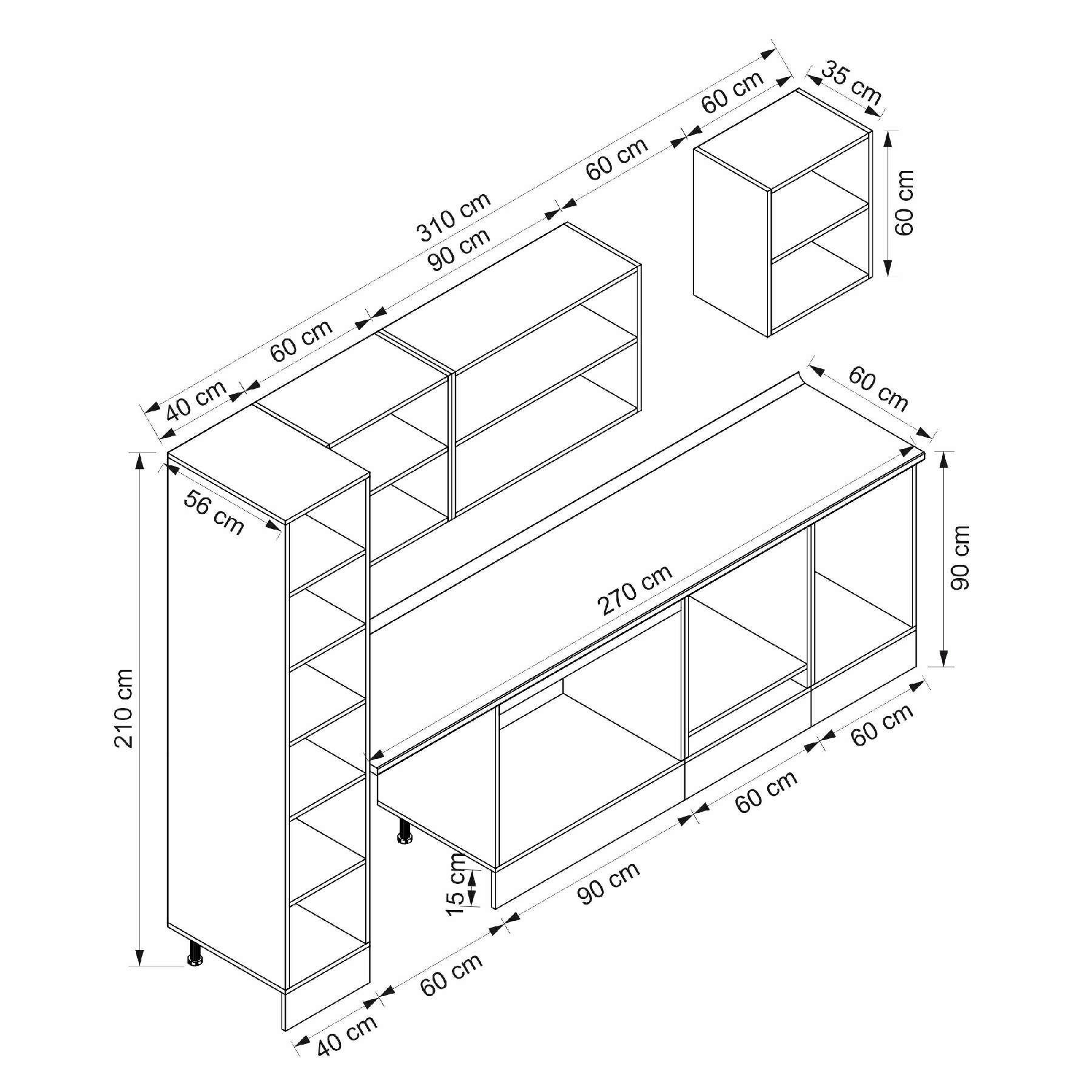 Alvinka 310X210 Cm Klasik Mebran Mutfak Dolabı Mb-E90B40S60-3 Mebran | Antrasit - Suntalam