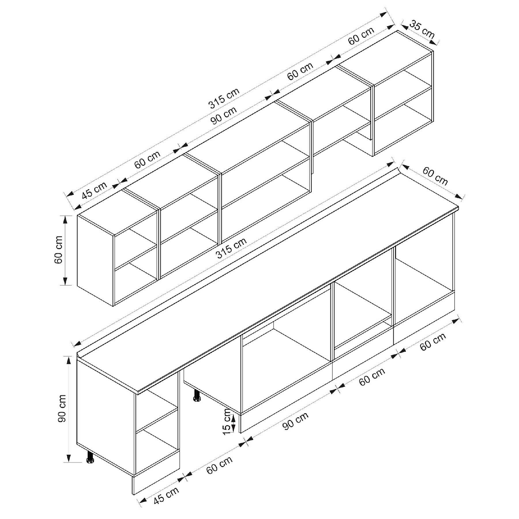 Alvinka 315X210 Cm Klasik Mebran Mutfak Dolabı M-E90S45S60-1 Mebran | Kumtaşı - Suntalam