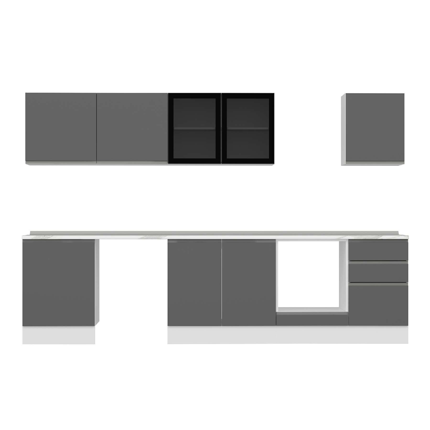 Alvinka 320X210 Cm High Gloss Mutfak Dolabı M-E90S60S50-3 High Gloss | Antrasit - Suntalam