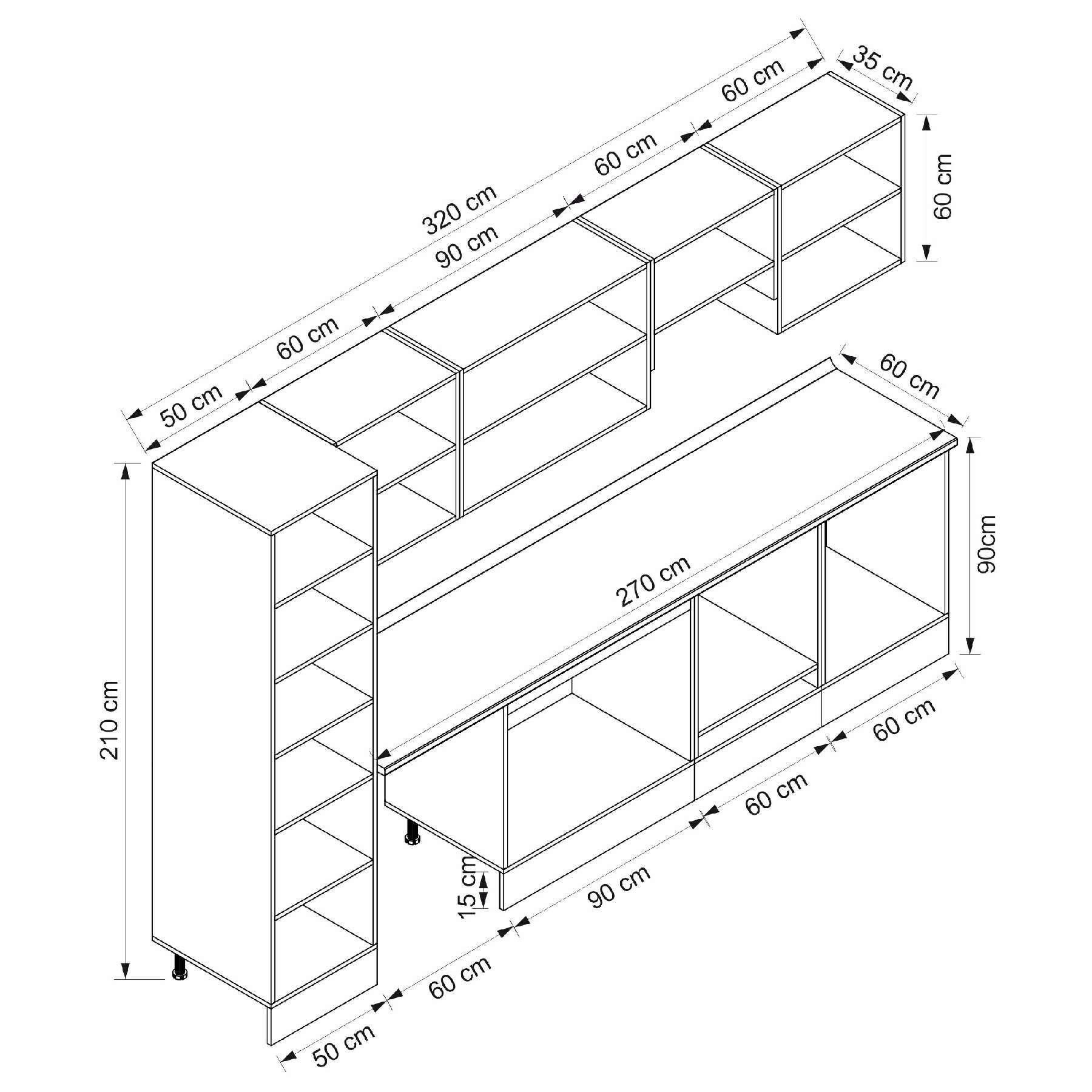 Alvinka 320X210 Cm High Gloss Mutfak Dolabı Mb-E90B50S60-1 High Gloss | Beyaz - Suntalam