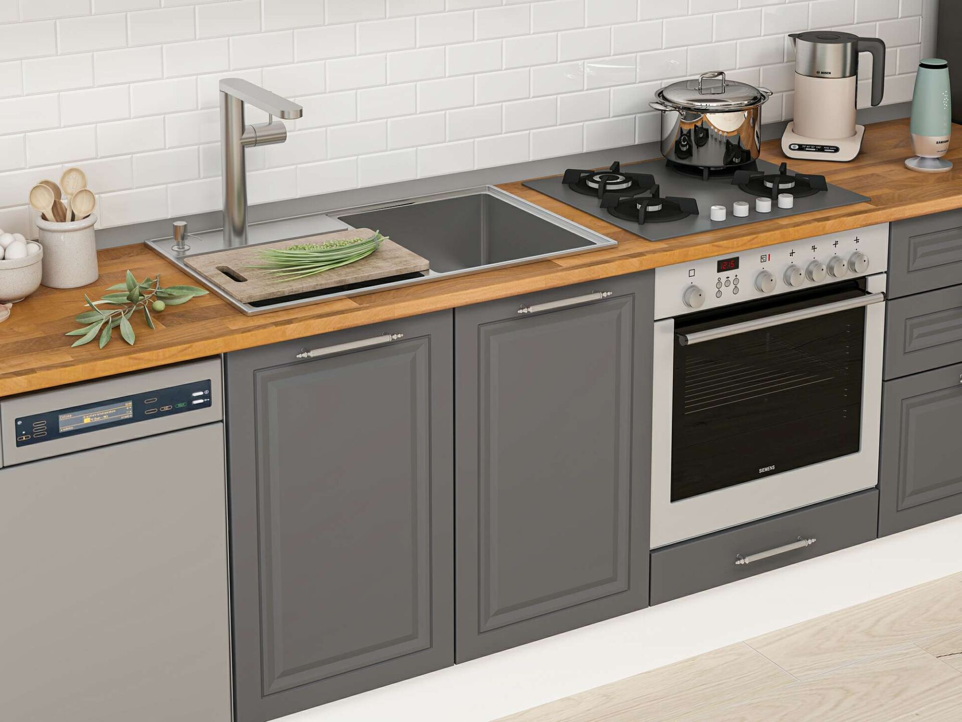 Alvinka 320X210 Cm Klasik Mebran Mutfak Dolabı M-E80S60S60-1 Mebran | Antrasit - Suntalam