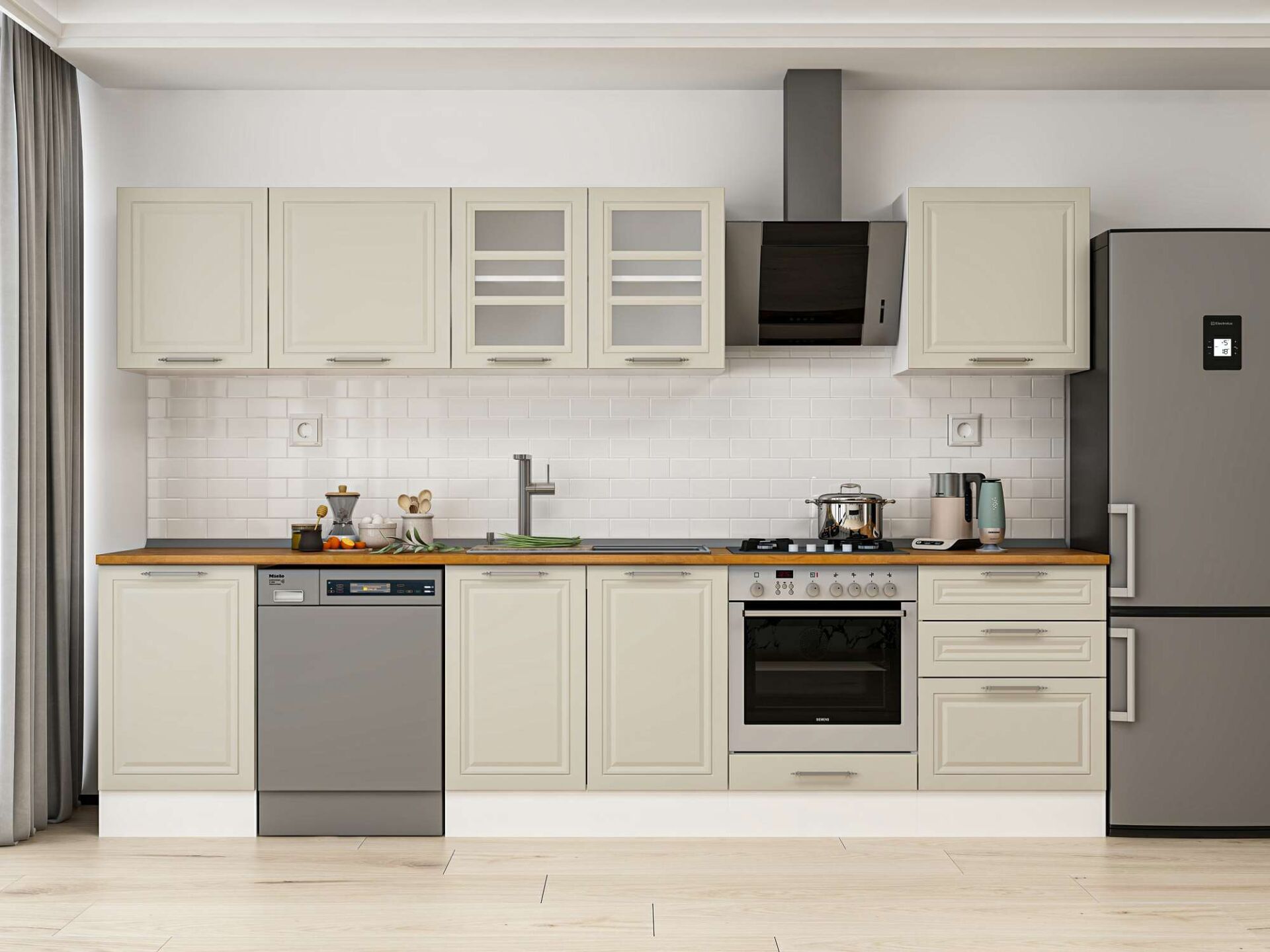 Alvinka 320X210 Cm Klasik Mebran Mutfak Dolabı M-E90S50S60-3 Mebran | Kumtaşı - Suntalam