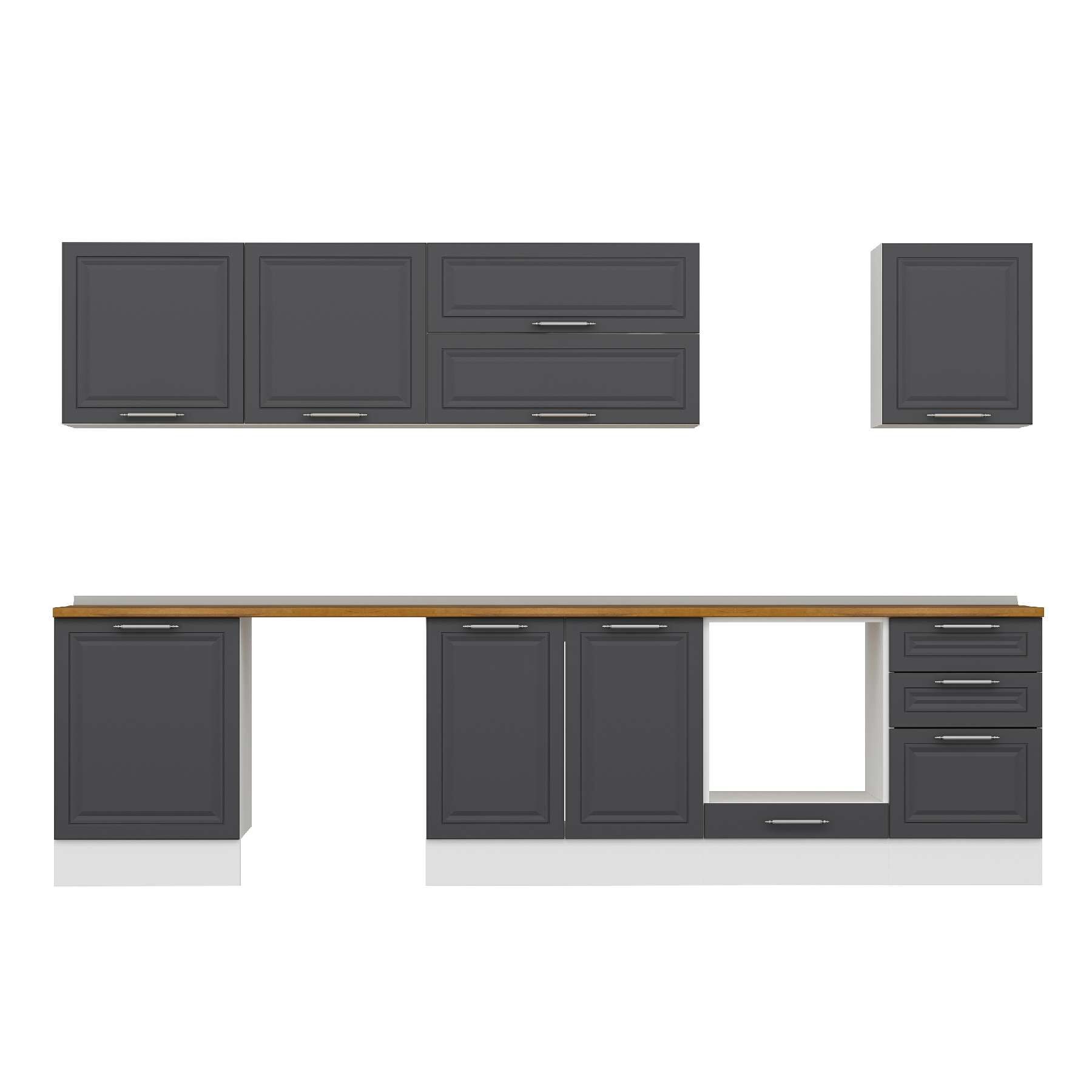 Alvinka 320X210 Cm Klasik Mebran Mutfak Dolabı M-E90S60S50-2 Mebran | Antrasit - Suntalam