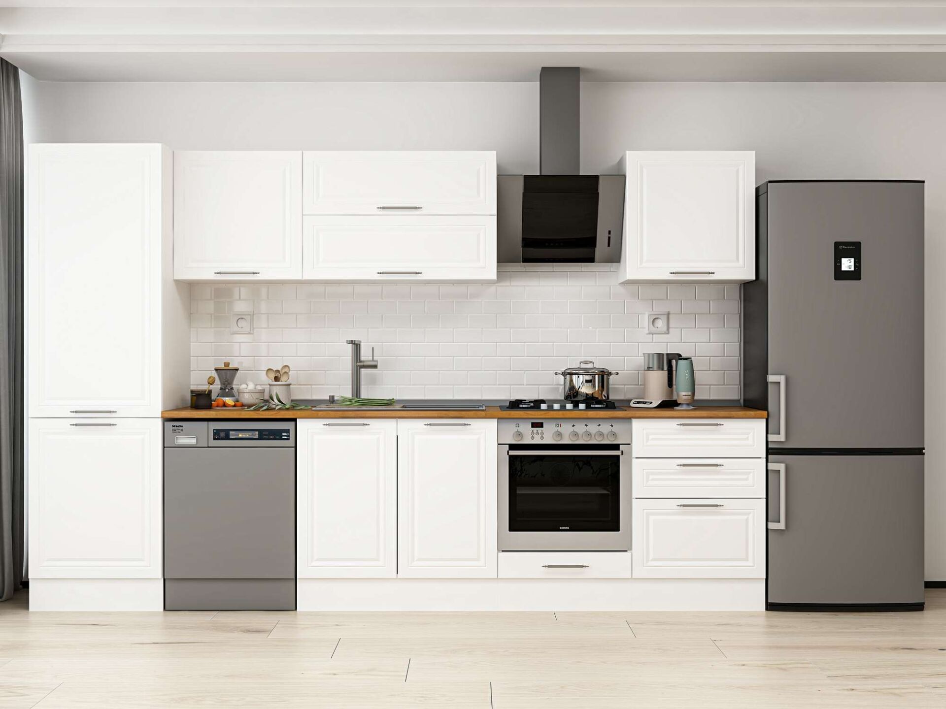 Alvinka 320X210 Cm Klasik Mebran Mutfak Dolabı Mb-E80B60S60-2 Mebran | Beyaz - Suntalam