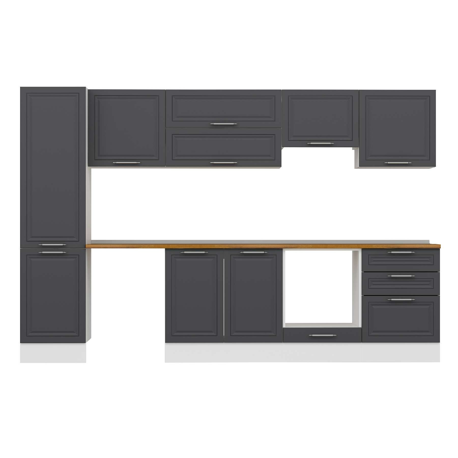 Alvinka 320X210 Cm Klasik Mebran Mutfak Dolabı Mb-E90B50S60-1 Mebran | Antrasit - Suntalam