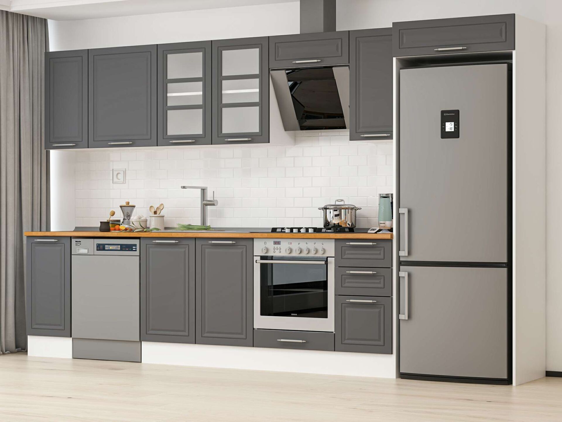 Alvinka 360X222 Cm Klasik Mebran Mutfak Dolabı Mb-E80S40S40-3
