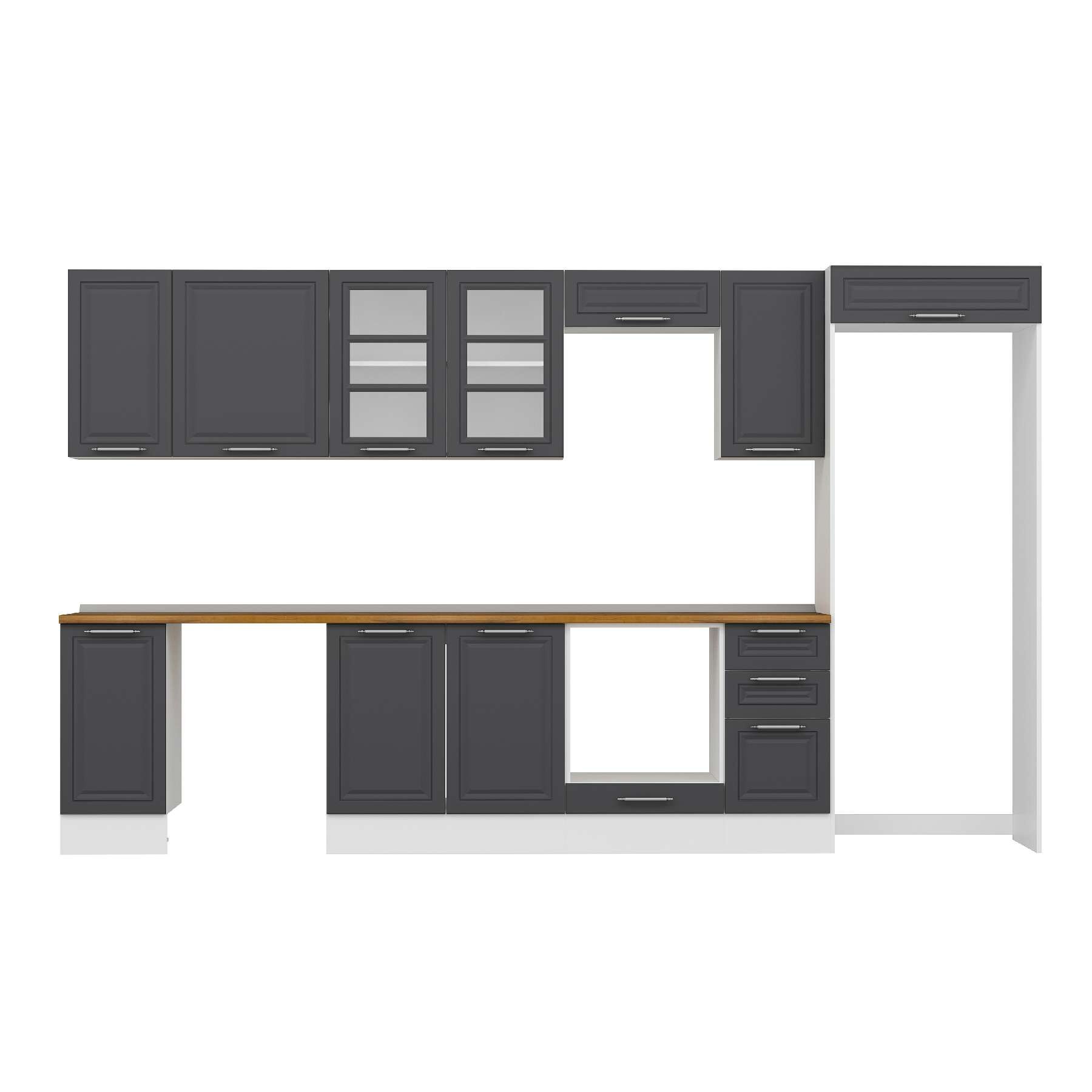 Alvinka 360X222 Cm Klasik Mebran Mutfak Dolabı Mb-E80S40S40-3 Mebran | Antrasit - Mdf