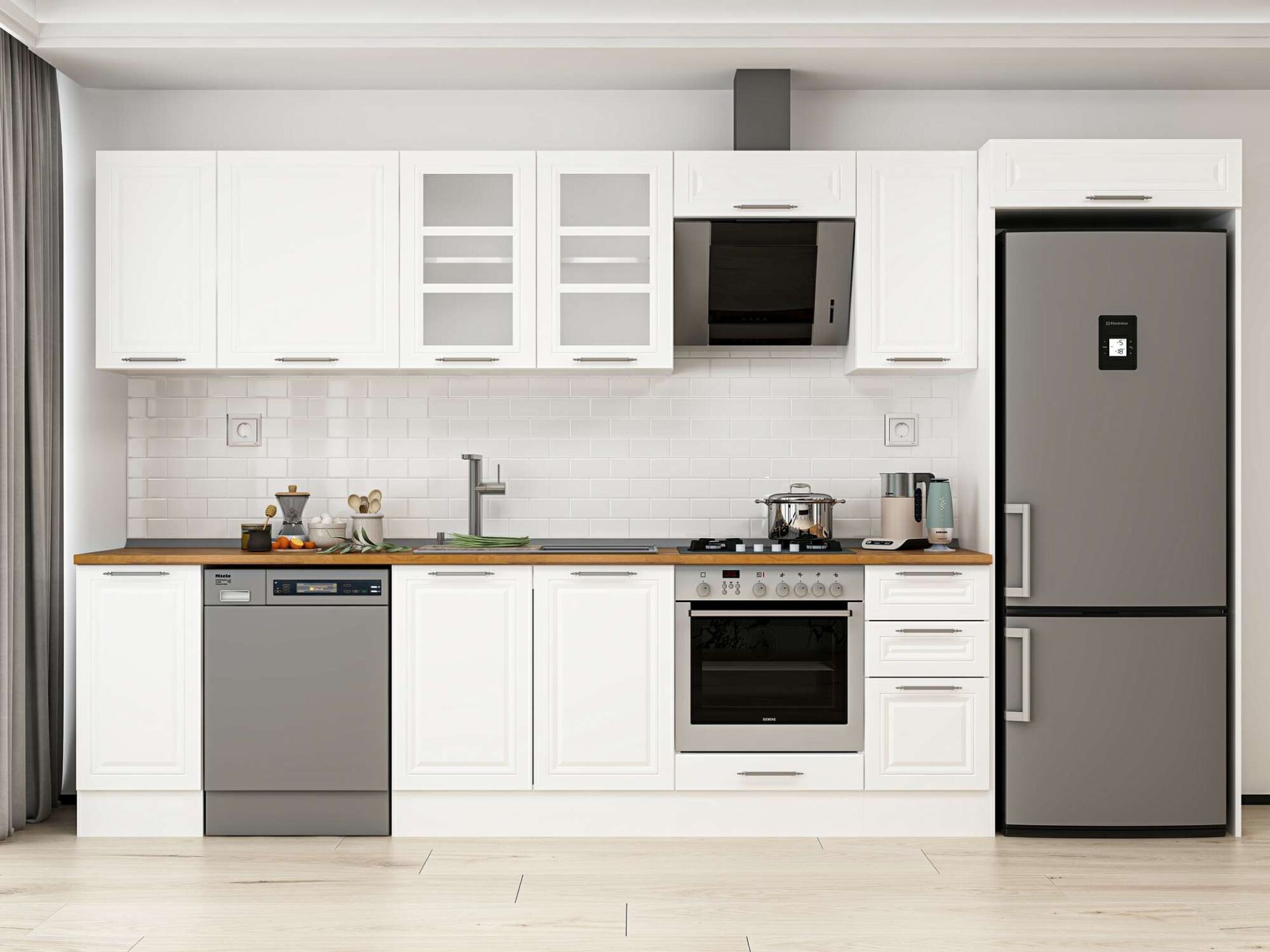 Alvinka 360X222 Cm Klasik Mebran Mutfak Dolabı Mb-E80S40S40-3 Mebran | Beyaz - Mdf