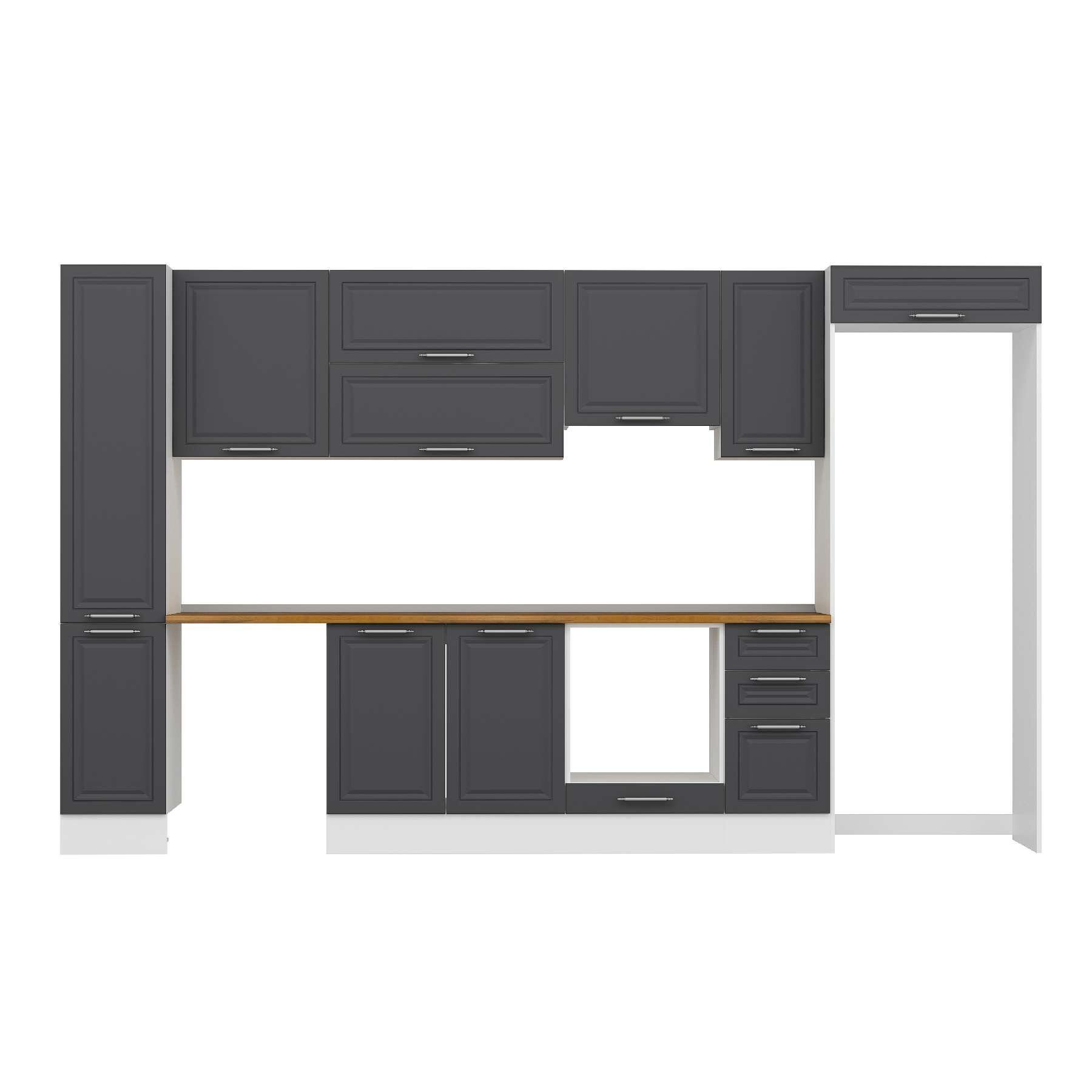Alvinka 360X222 Cm Klasik Mebran Mutfak Dolabı Mbb-E80B40S40-1 Mebran | Antrasit - Suntalam