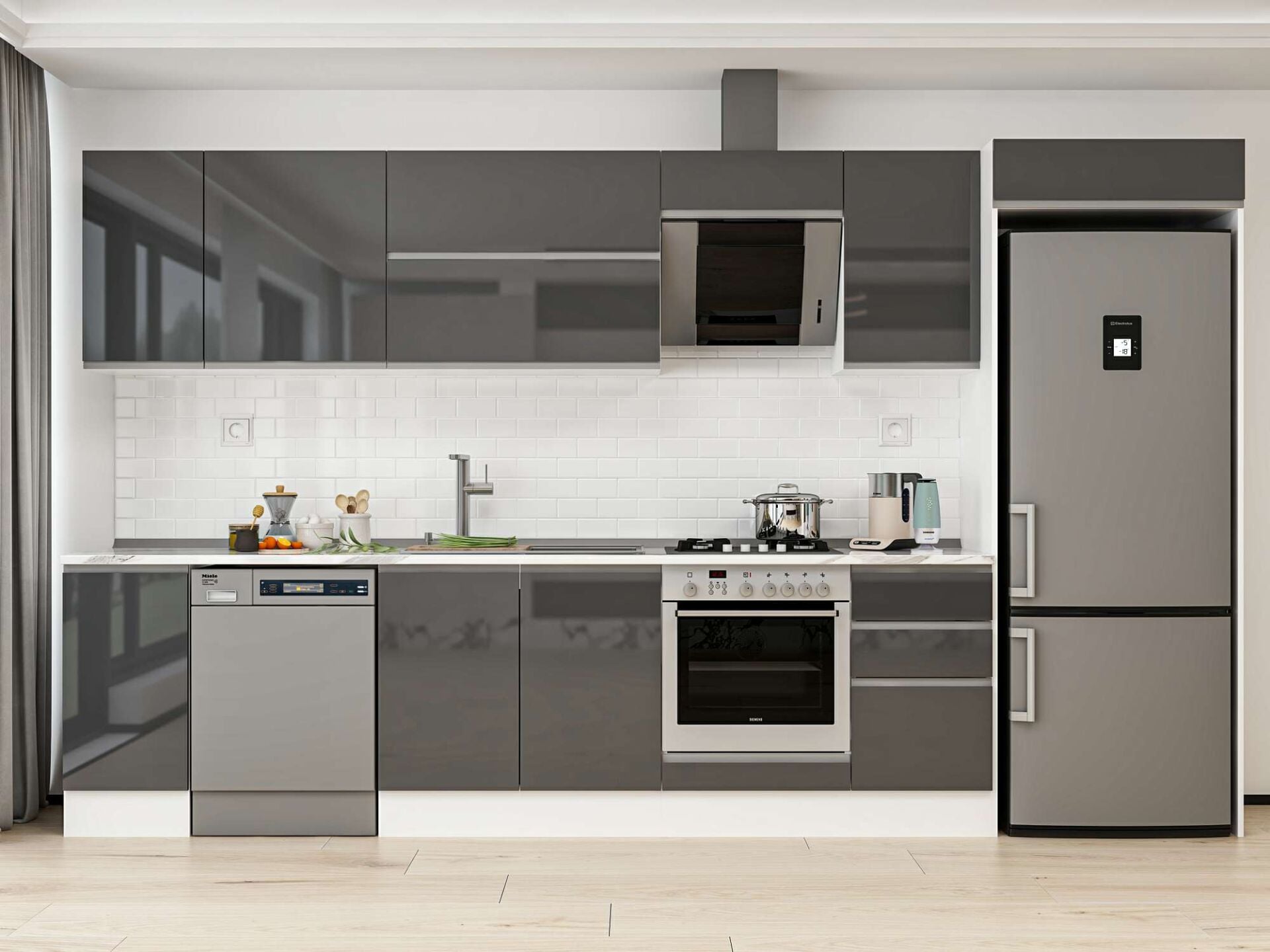 Alvinka 365X222 Cm High Gloss Mutfak Dolabı Mb-E80S40S45-2 High Gloss | Antrasit - Suntalam
