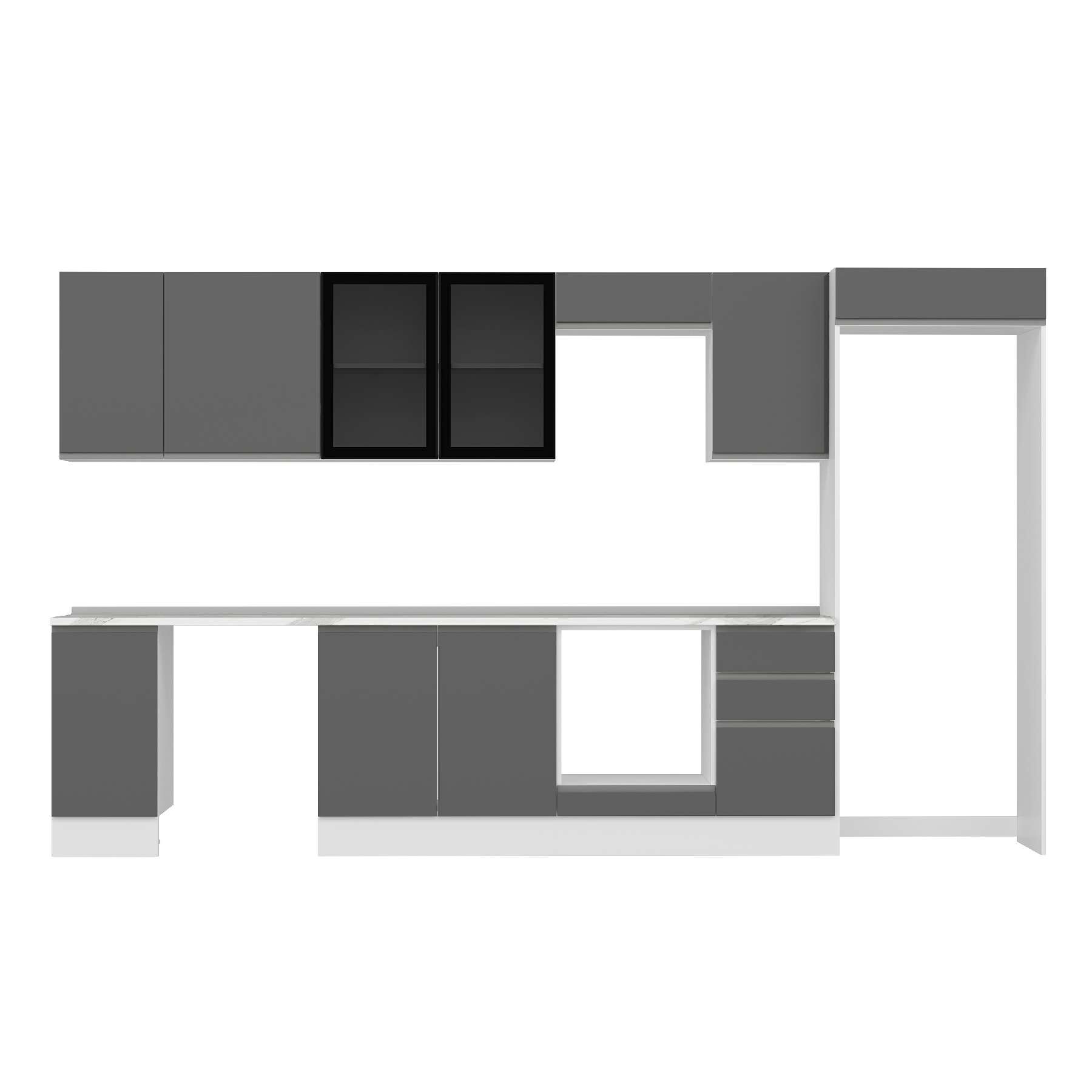 Alvinka 365X222 Cm High Gloss Mutfak Dolabı Mb-E80S40S45-3 High Gloss | Antrasit - Mdf
