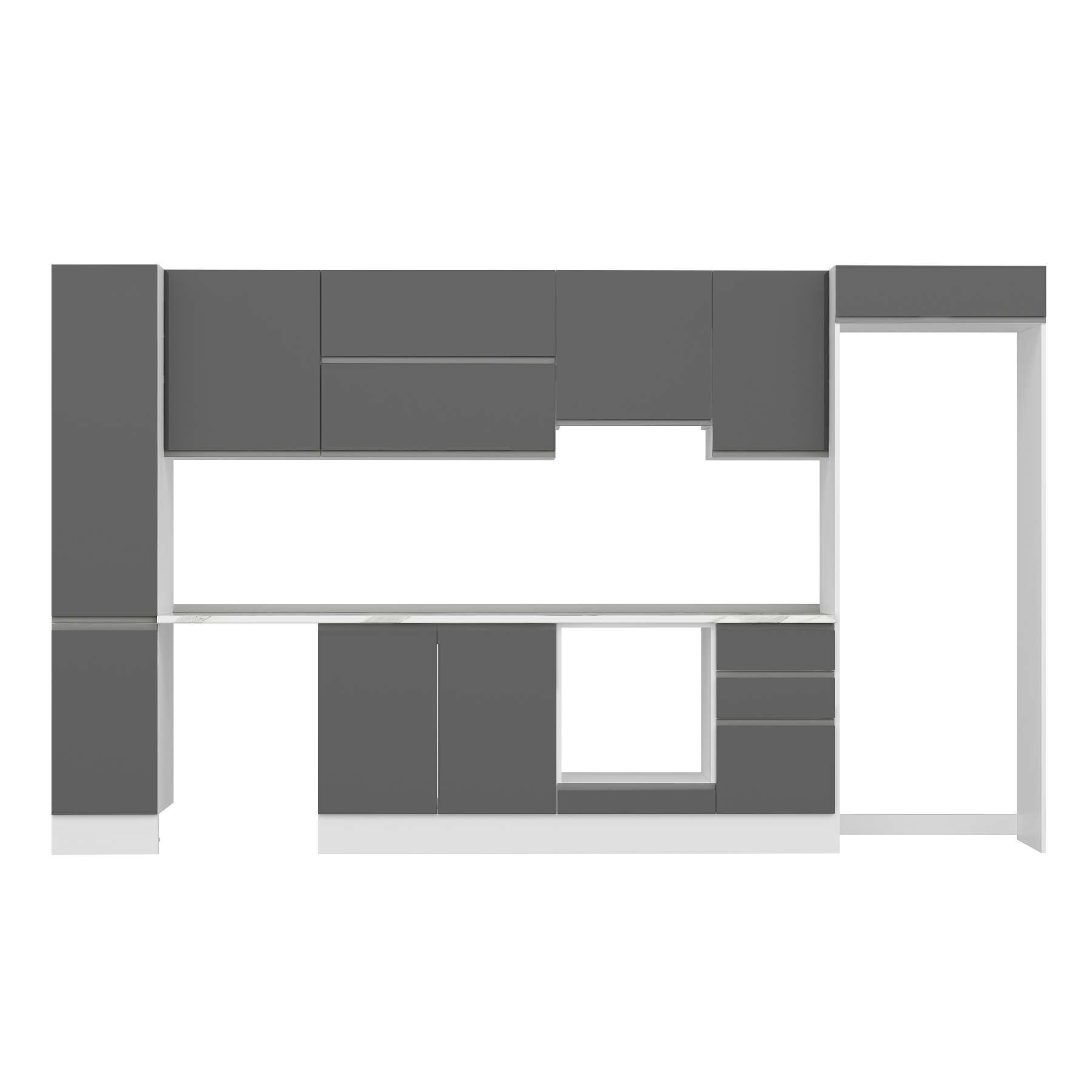 Alvinka 365X222 Cm High Gloss Mutfak Dolabı Mbb-E80B40S45-1 High Gloss | Antrasit - Suntalam