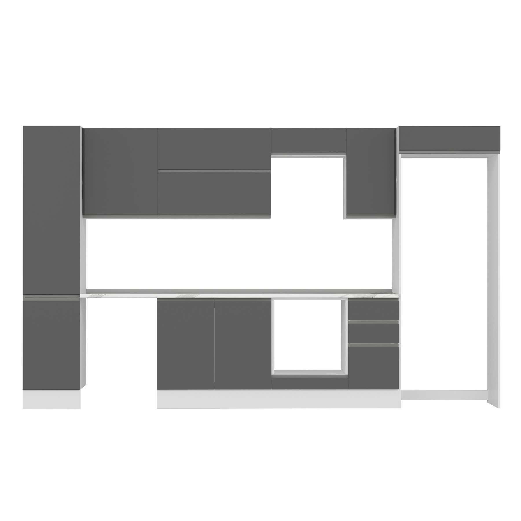 Alvinka 365X222 Cm High Gloss Mutfak Dolabı Mbb-E80B45S40-2 High Gloss | Antrasit - Mdf