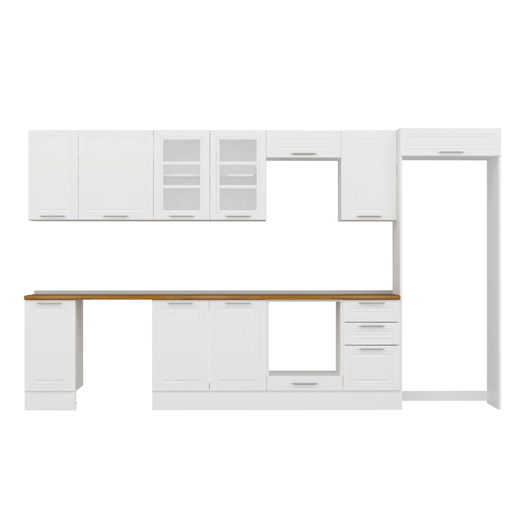 Alvinka 365X222 Cm Klasik Mebran Mutfak Dolabı Mb-E80S40S45-3 Mebran | Beyaz - Mdf
