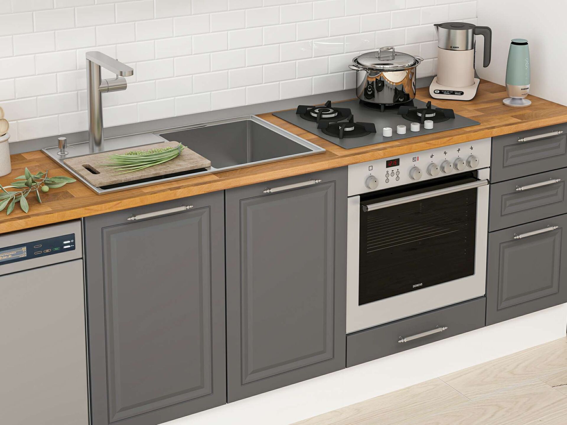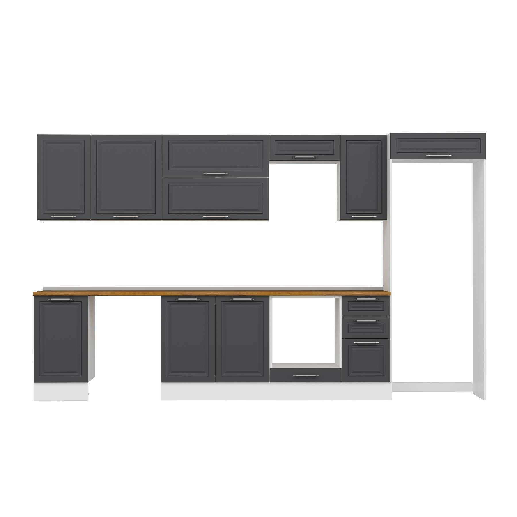 Alvinka 365X222 Cm Klasik Mebran Mutfak Dolabı Mb-E80S45S40-2 Mebran | Antrasit - Suntalam