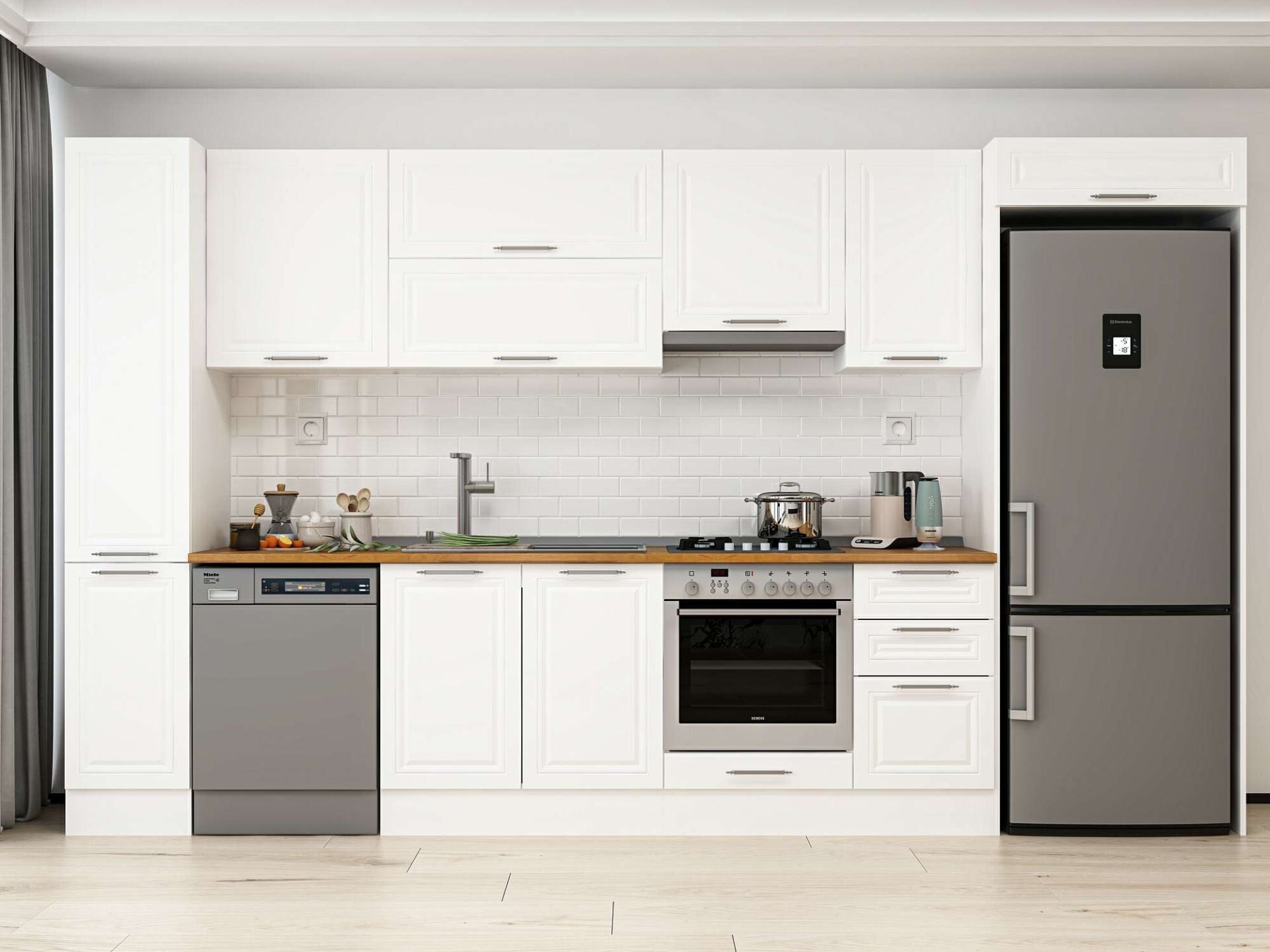 Alvinka 365X222 Cm Klasik Mebran Mutfak Dolabı Mbb-E80B40S45-1 Mebran | Beyaz - Suntalam