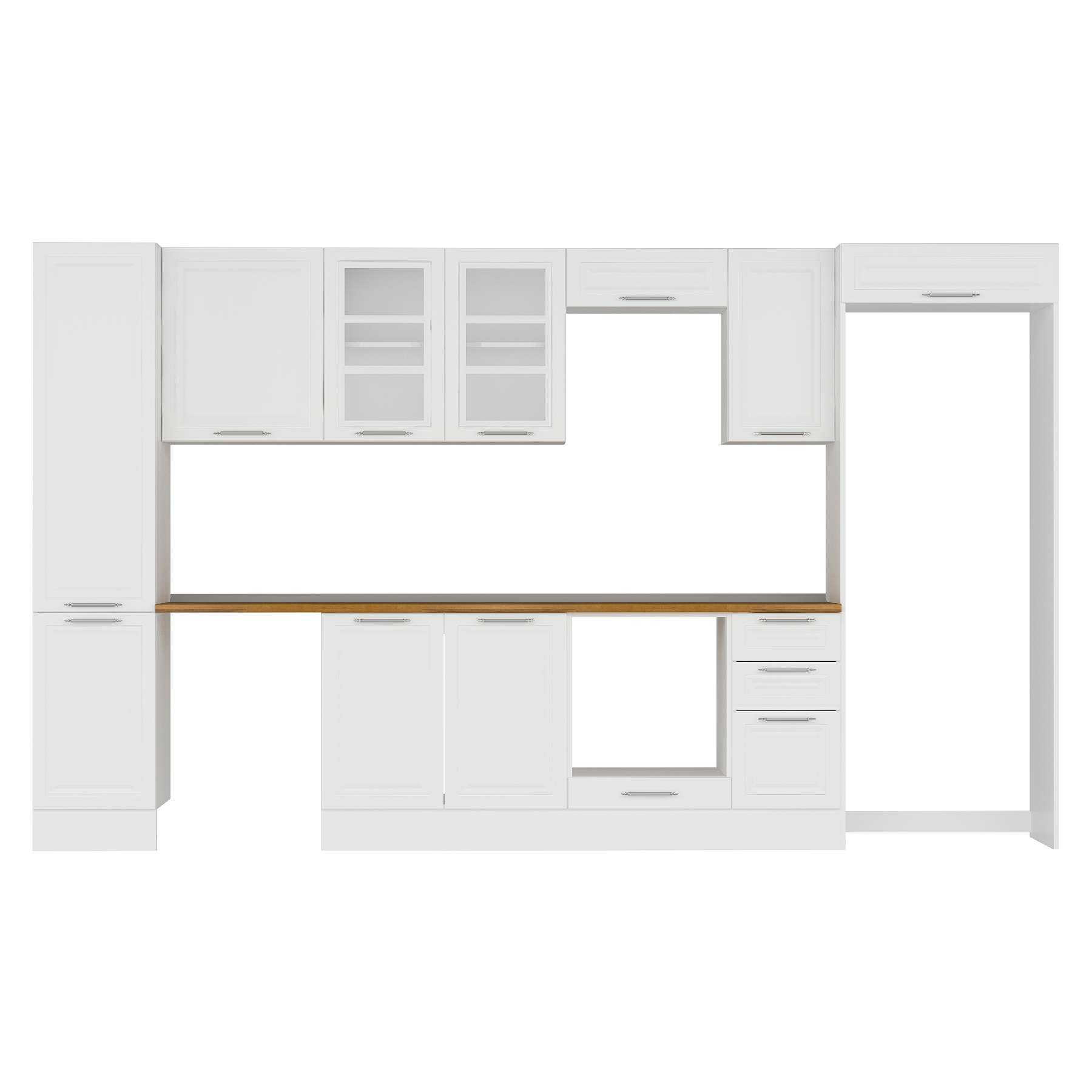 Alvinka 365X222 Cm Klasik Mebran Mutfak Dolabı Mbb-E80B45S40-3 Mebran | Beyaz - Suntalam