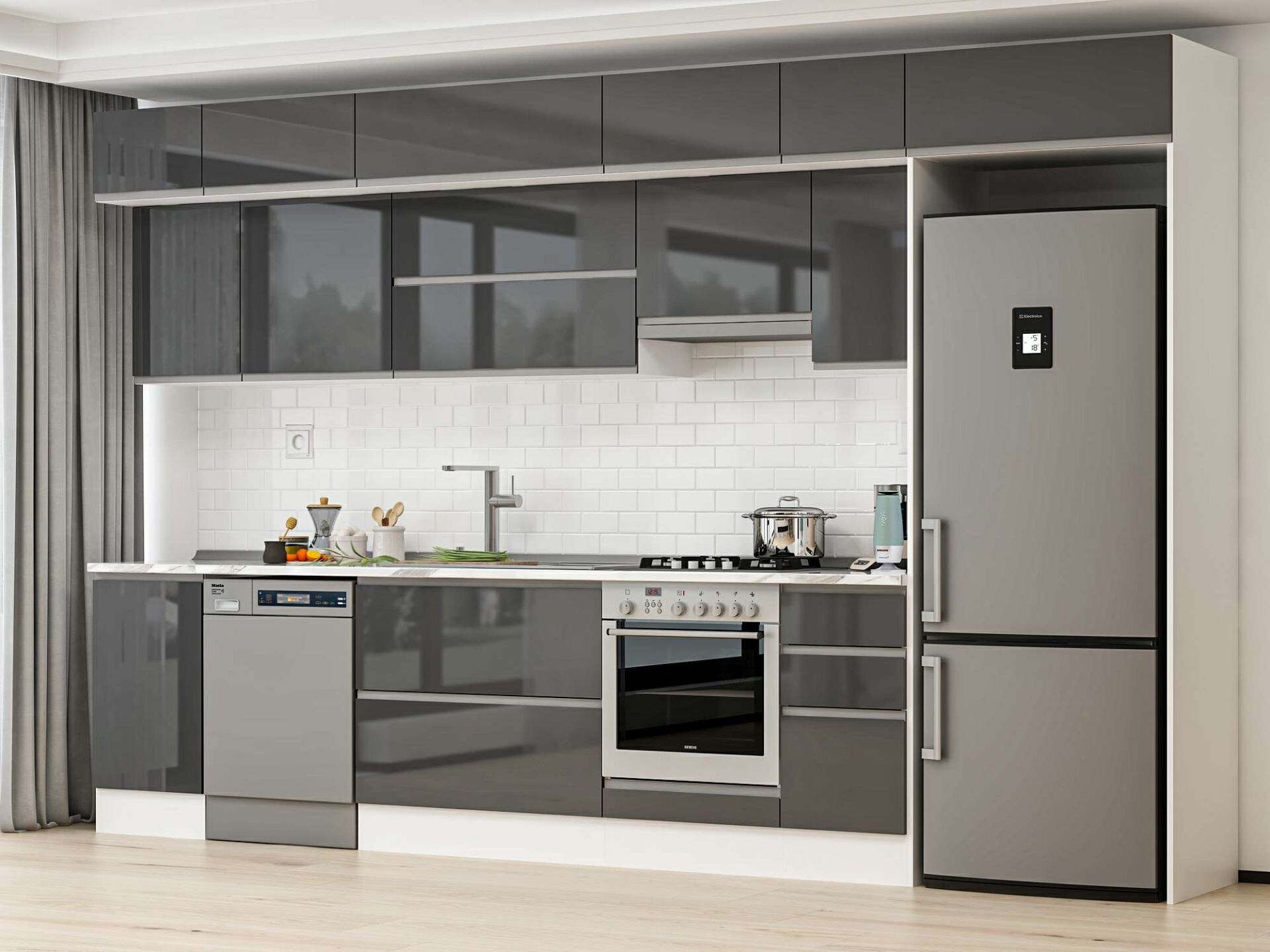 Alvinka 365X240 Cm High Gloss Mutfak Dolabı Mb-E80S45S40-1 High Gloss | Antrasit - Mdf
