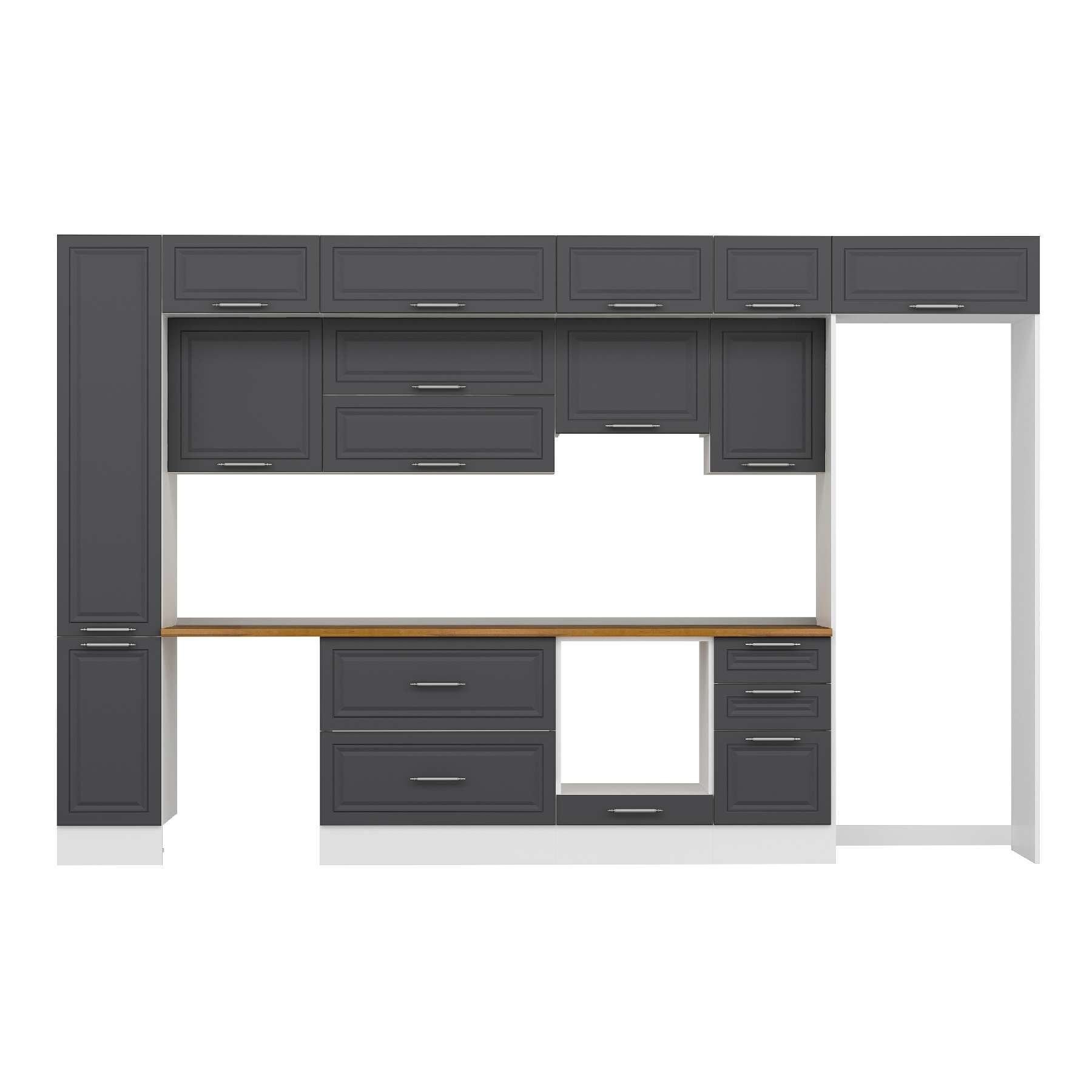 Alvinka 365X240 Cm Klasik Mebran Mutfak Dolabı Mbb-E80B40S45-1 Mebran | Antrasit - Suntalam