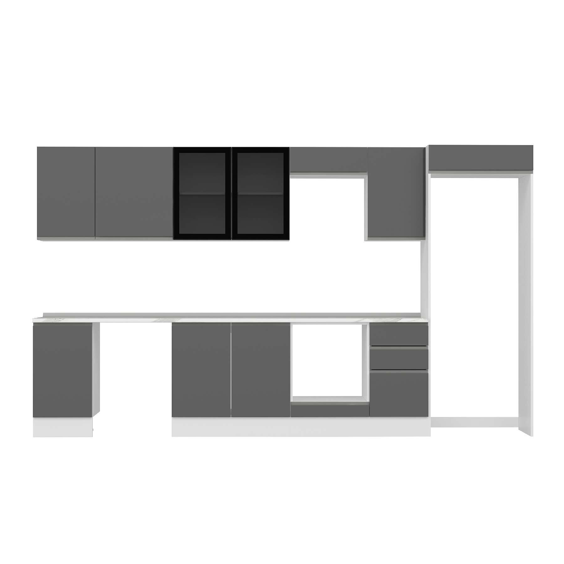 Alvinka 370X222 Cm High Gloss Mutfak Dolabı Mb-E80S45S45-3 High Gloss | Antrasit - Mdf