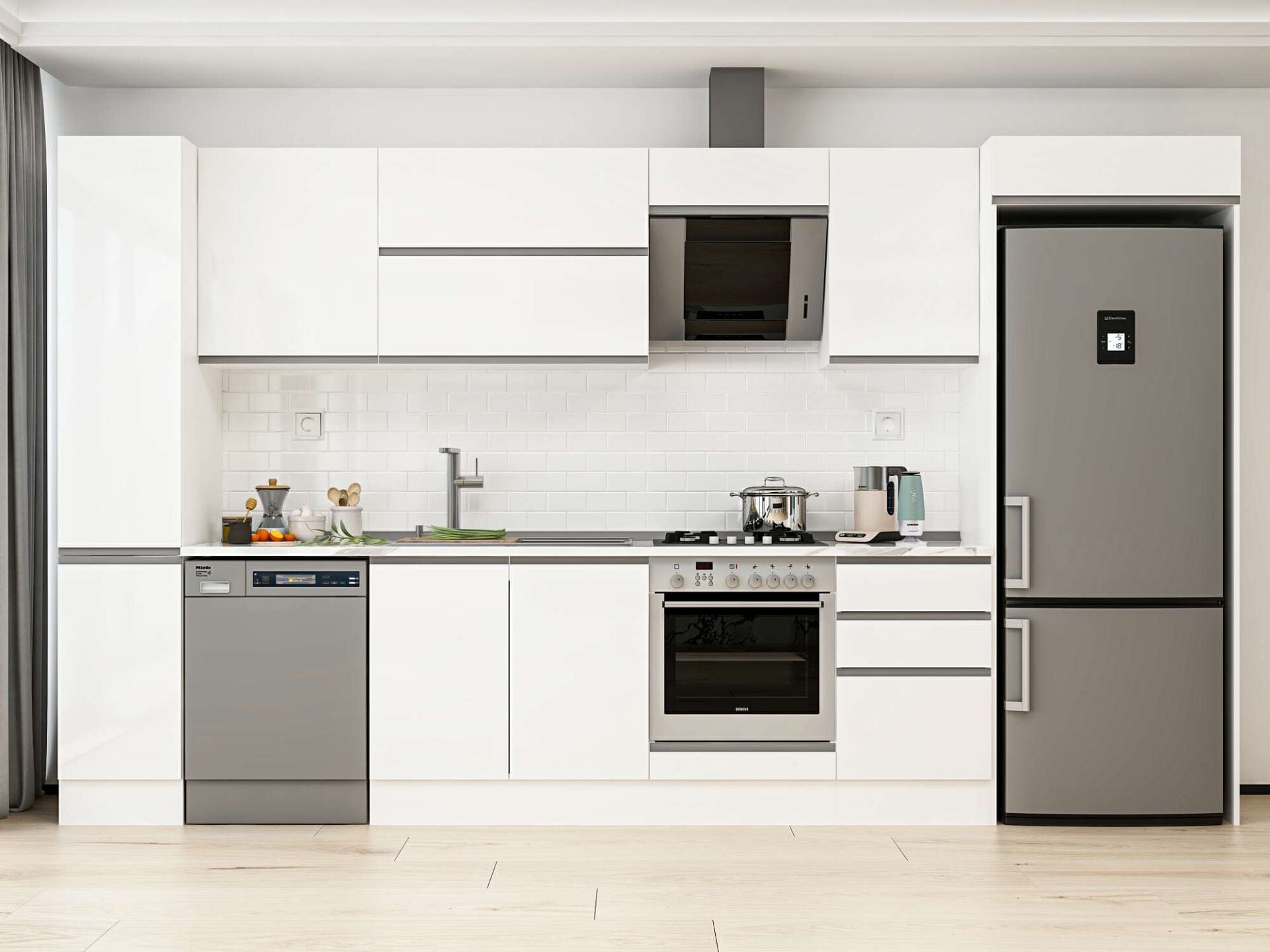 Alvinka 370X222 Cm High Gloss Mutfak Dolabı Mbb-E80B40S50-2 High Gloss | Beyaz - Mdf