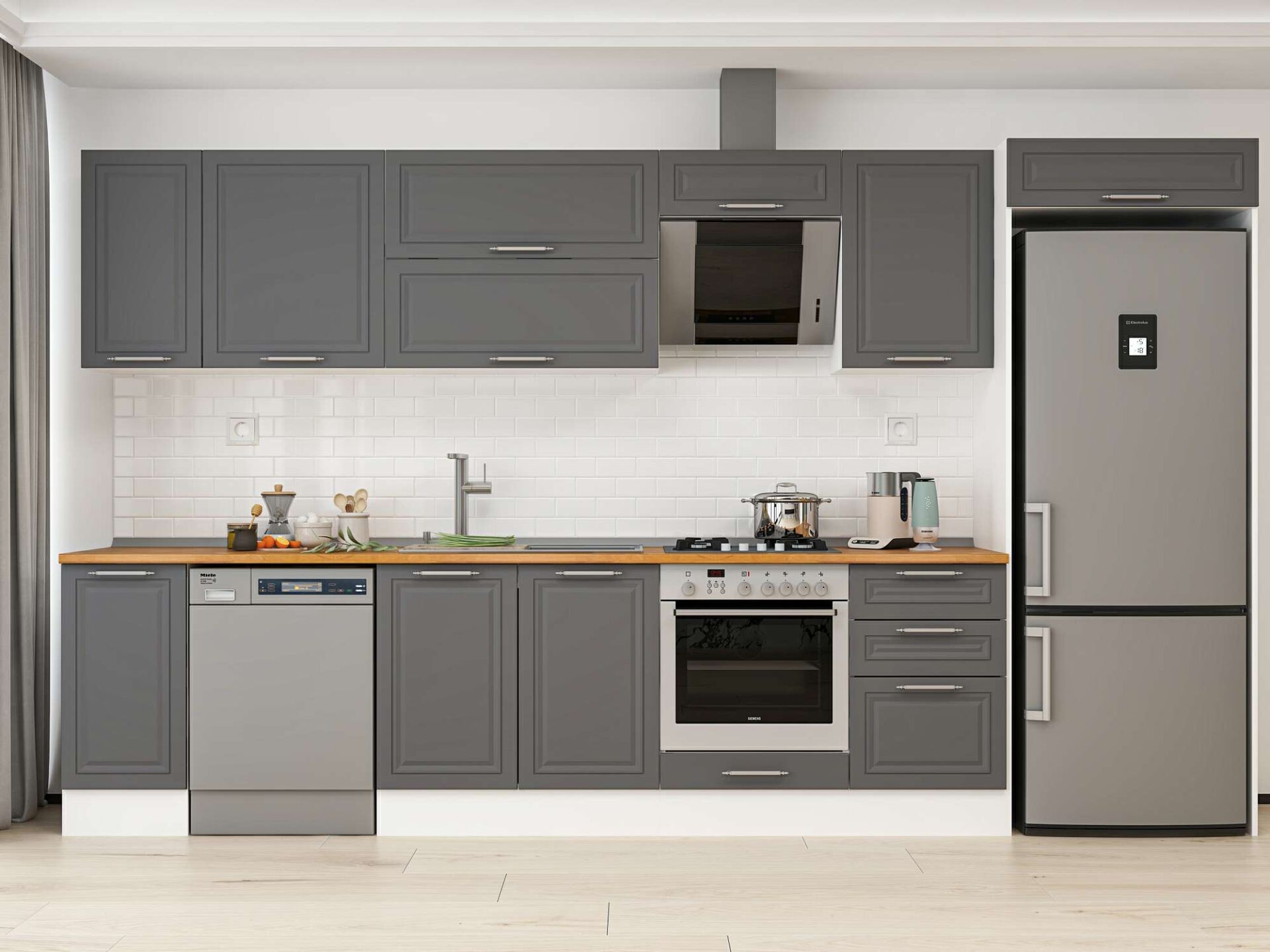 Alvinka 370X222 Cm Klasik Mebran Mutfak Dolabı Mb-E80S40S50-2 Mebran | Antrasit - Suntalam