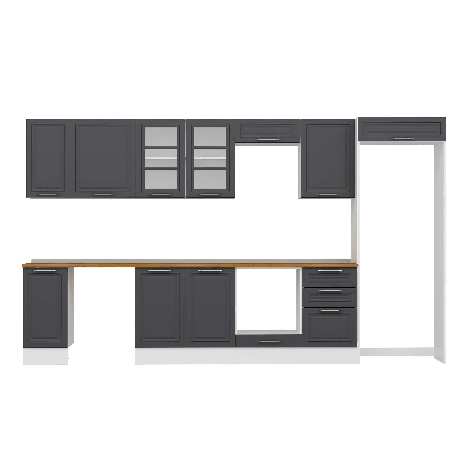 Alvinka 370X222 Cm Klasik Mebran Mutfak Dolabı Mb-E80S40S50-3 Mebran | Antrasit - Suntalam