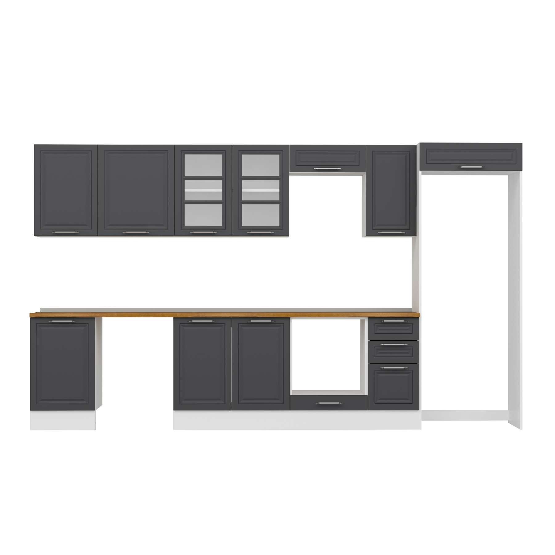 Alvinka 370X222 Cm Klasik Mebran Mutfak Dolabı Mb-E80S50S40-3 Mebran | Antrasit - Mdf