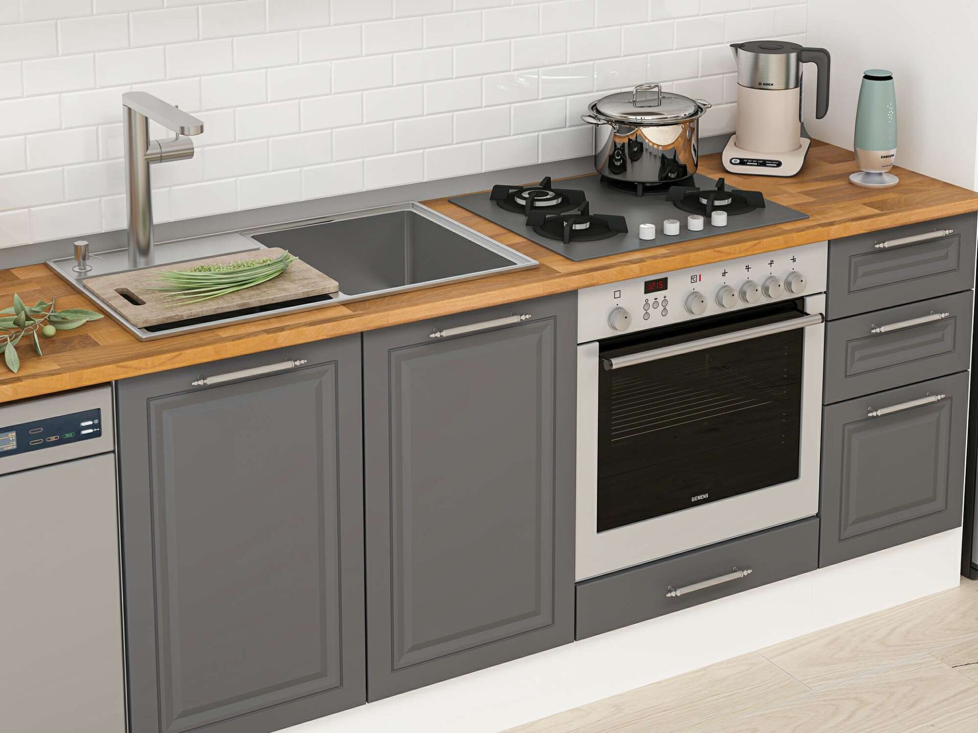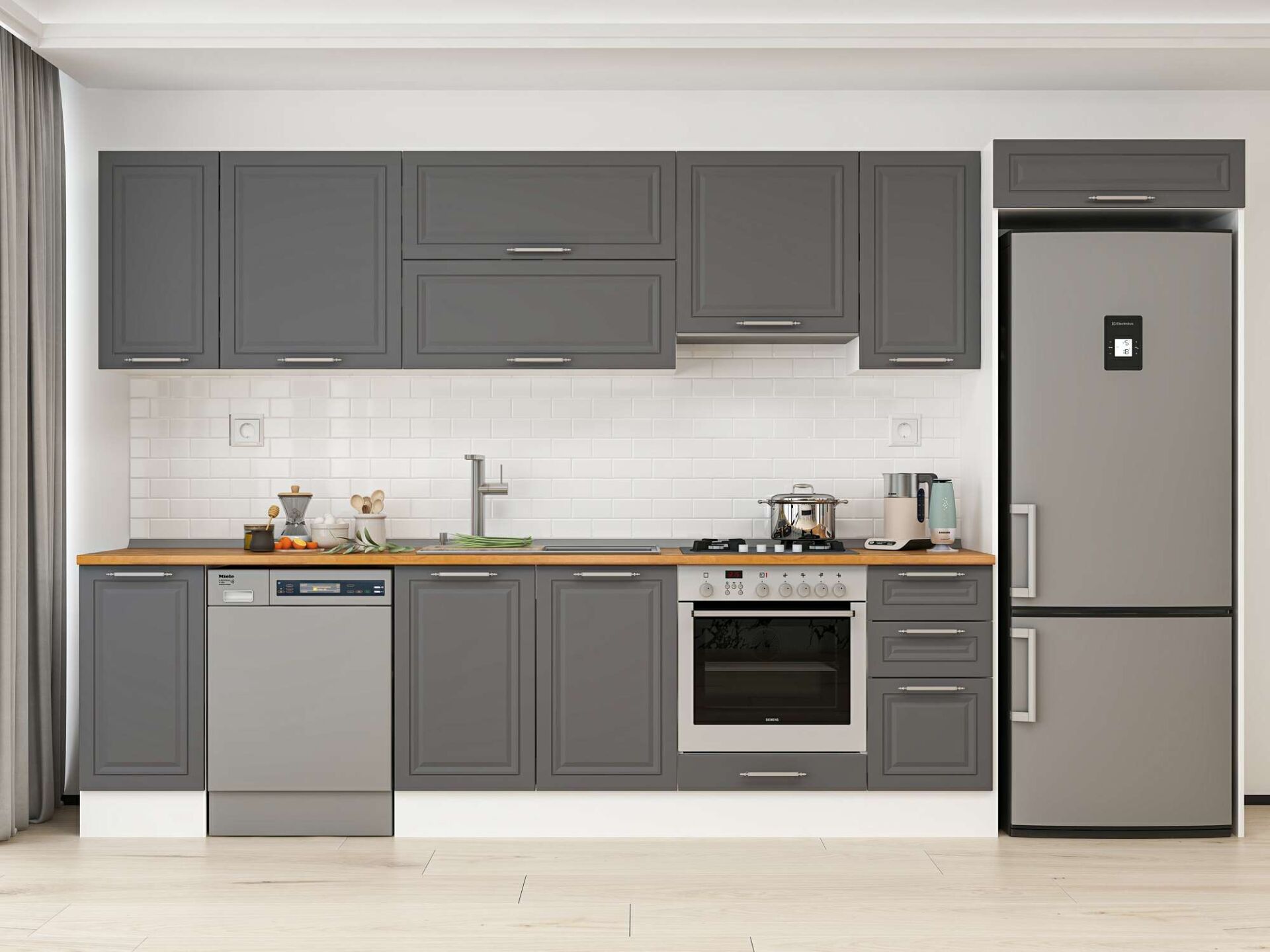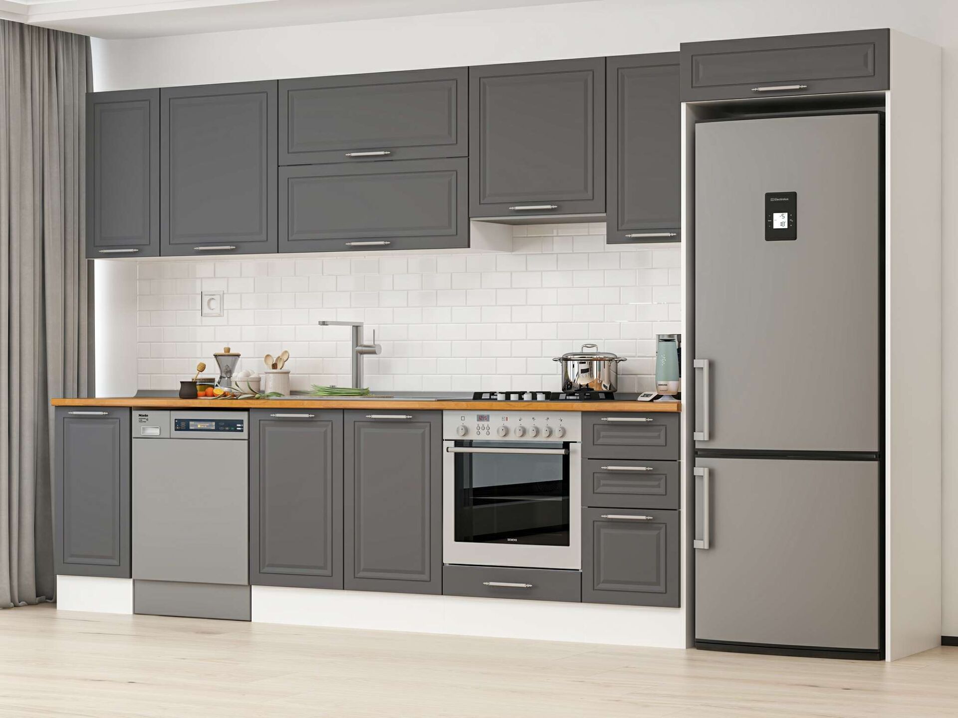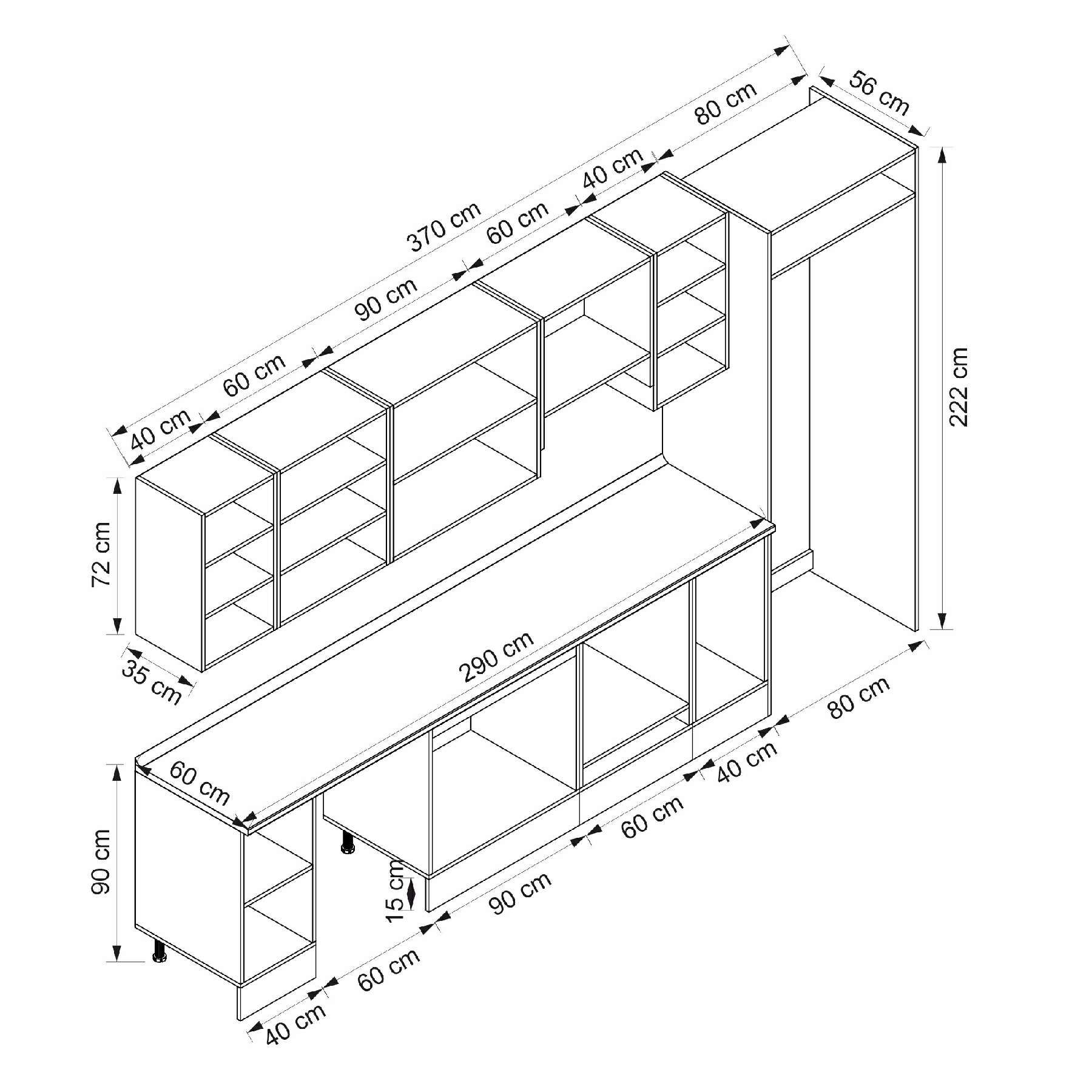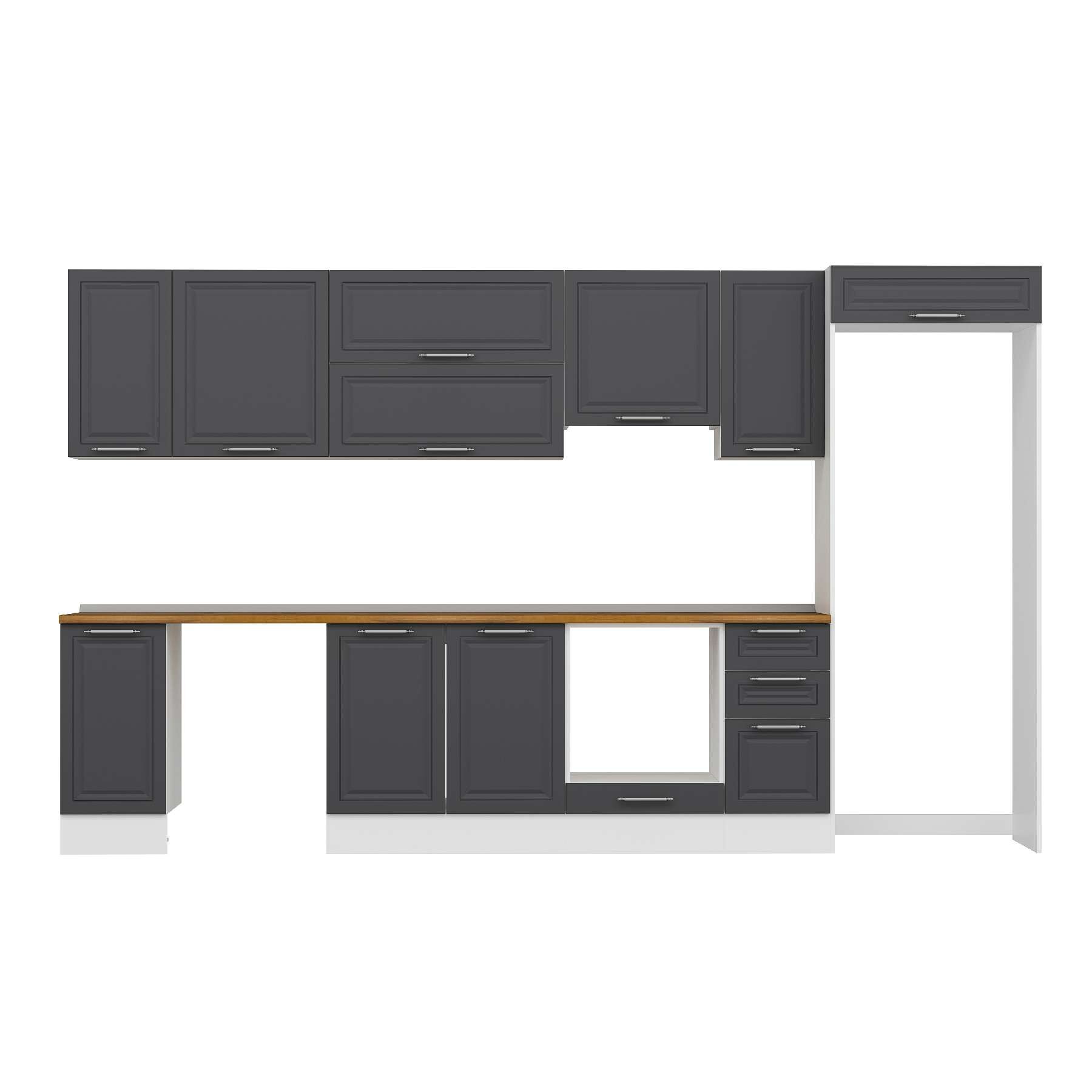 Alvinka 370X222 Cm Klasik Mebran Mutfak Dolabı Mb-E90S40S40-1 Mebran | Antrasit - Suntalam