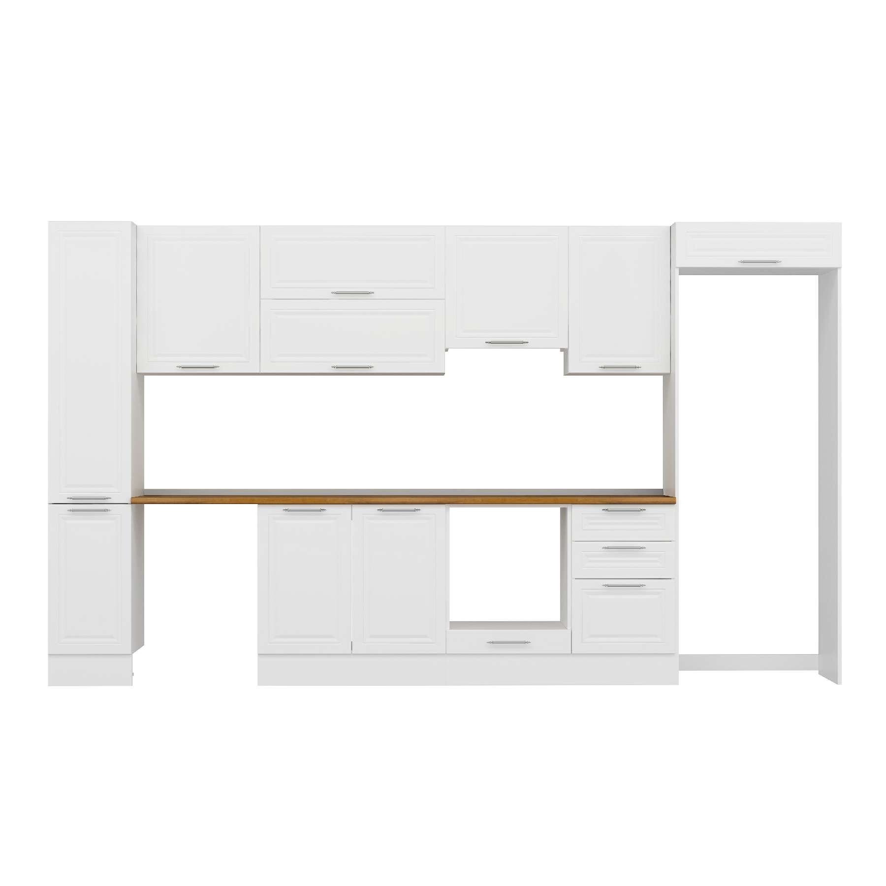 Alvinka 370X222 Cm Klasik Mebran Mutfak Dolabı Mbb-E80B40S50-1 Mebran | Beyaz - Suntalam