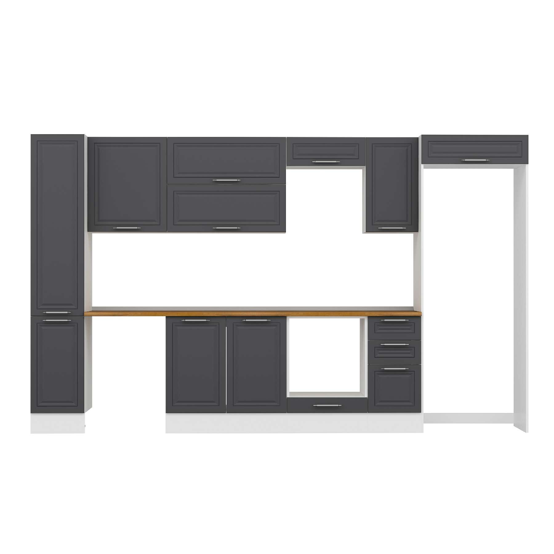 Alvinka 370X222 Cm Klasik Mebran Mutfak Dolabı Mbb-E90B40S40-2 Mebran | Antrasit - Suntalam