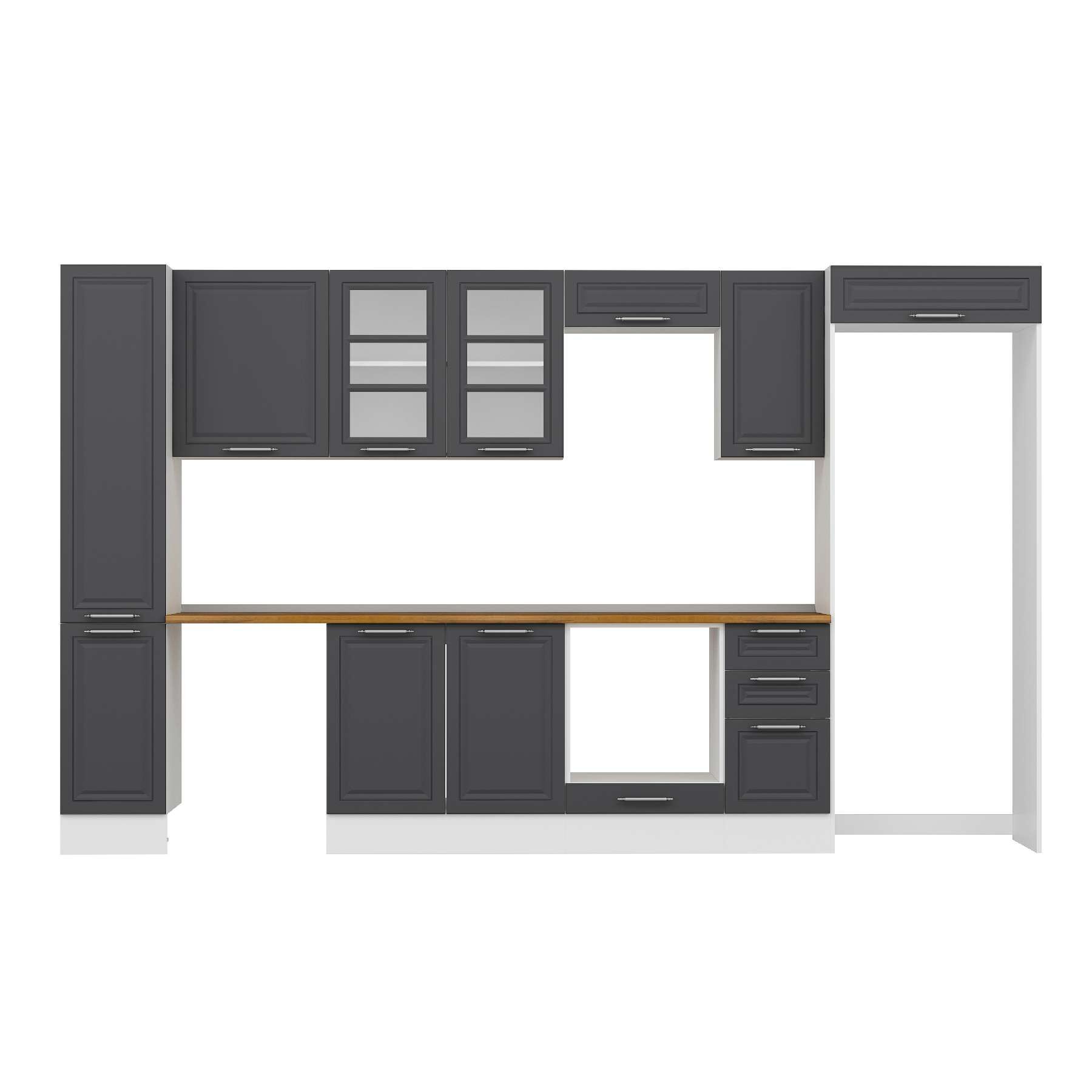 Alvinka 370X222 Cm Klasik Mebran Mutfak Dolabı Mbb-E90B40S40-3 Mebran | Antrasit - Mdf