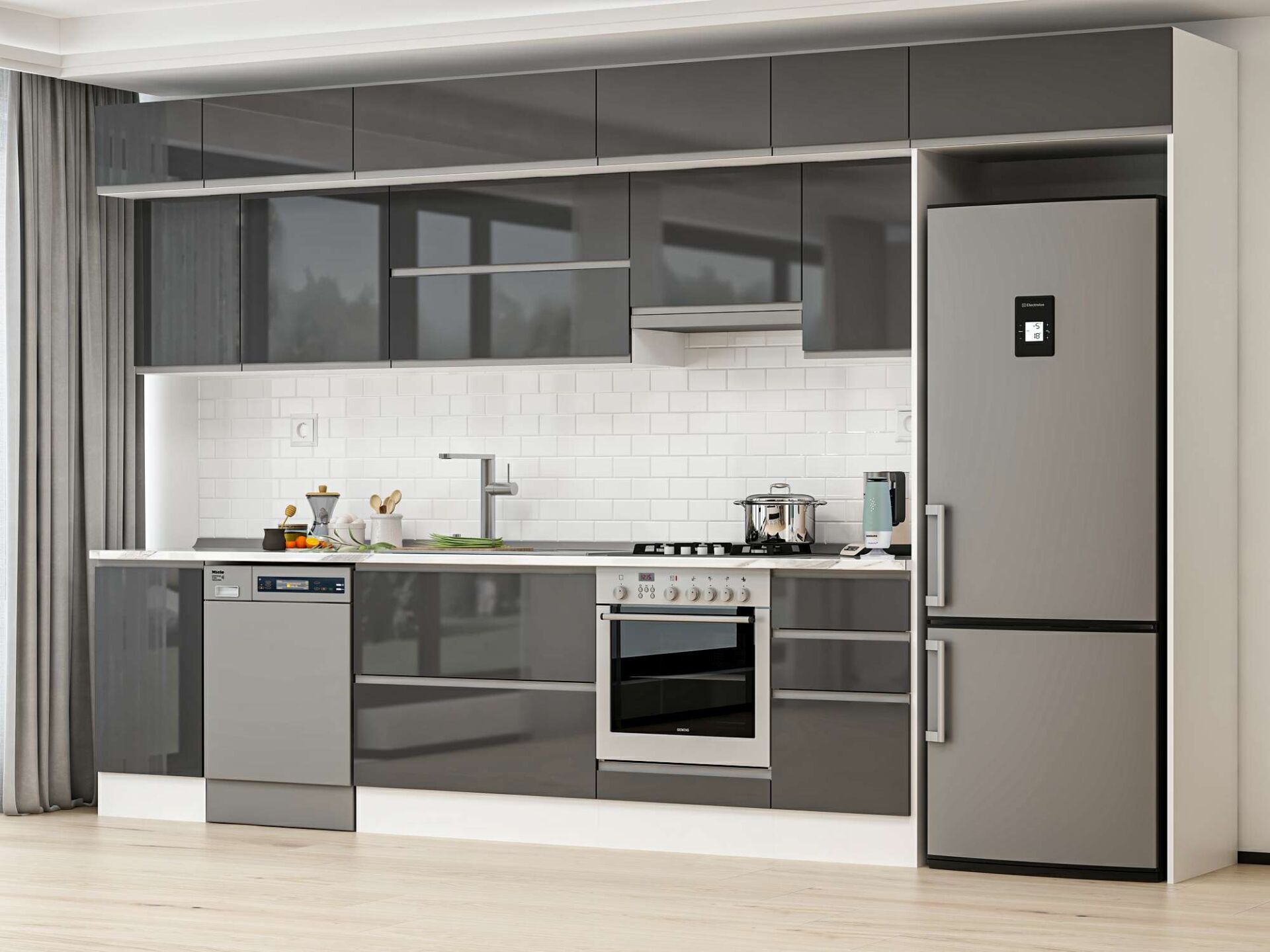 Alvinka 370X240 Cm High Gloss Mutfak Dolabı Mb-E80S45S45-1 High Gloss | Antrasit - Mdf