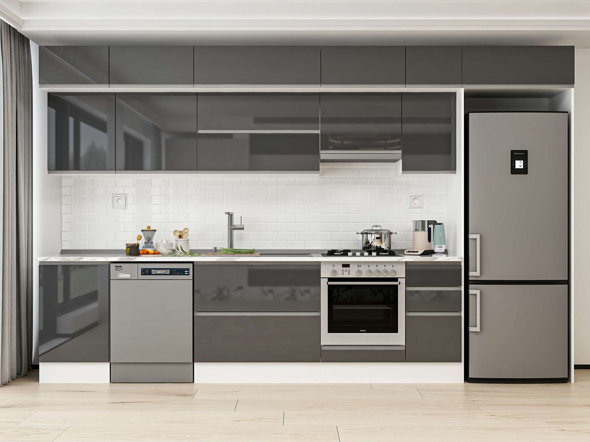 Alvinka 370X240 Cm High Gloss Mutfak Dolabı Mb-E80S50S40-1 High Gloss | Antrasit - Suntalam
