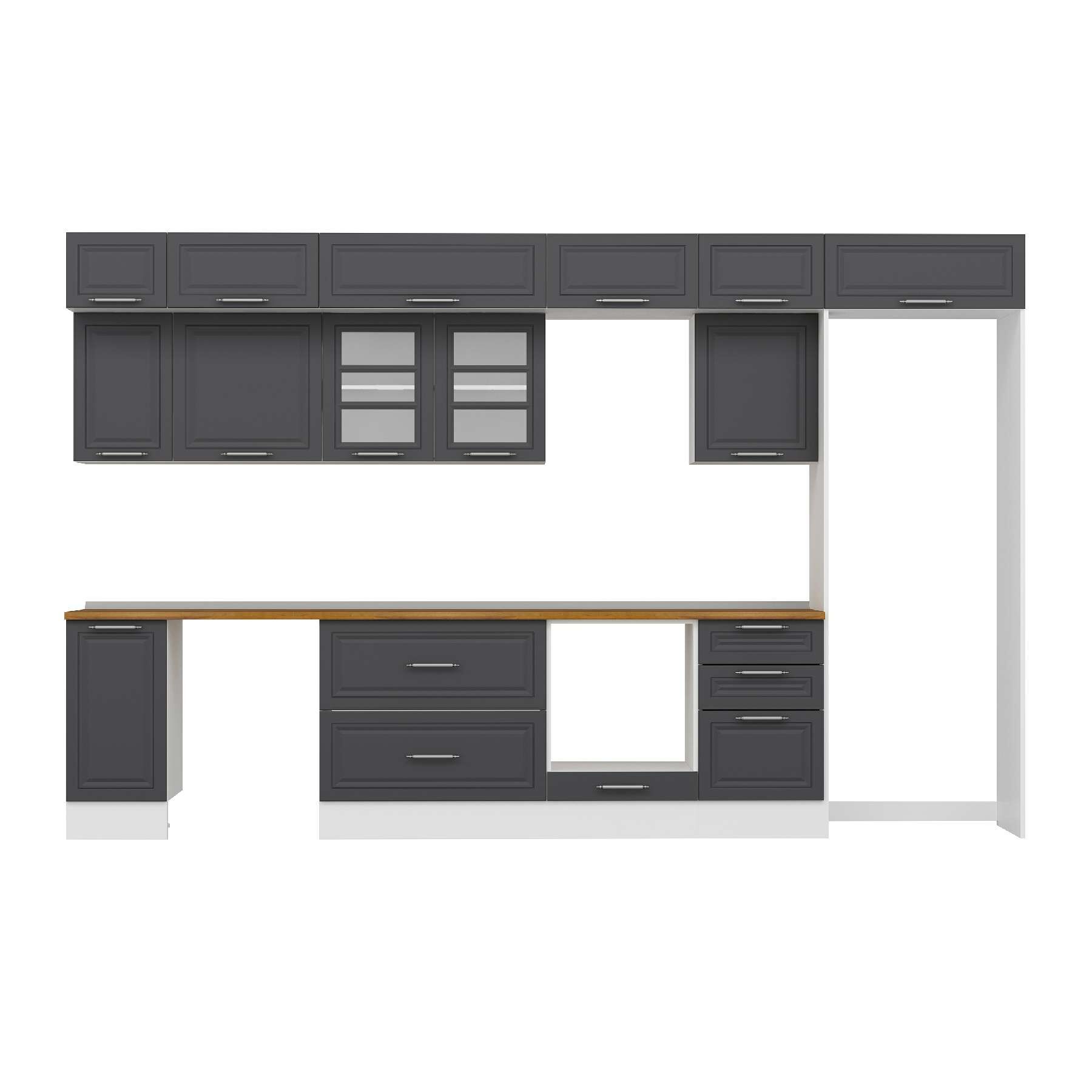 Alvinka 370X240 Cm Klasik Mebran Mutfak Dolabı Mb-E80S40S50-3 Mebran | Antrasit - Suntalam